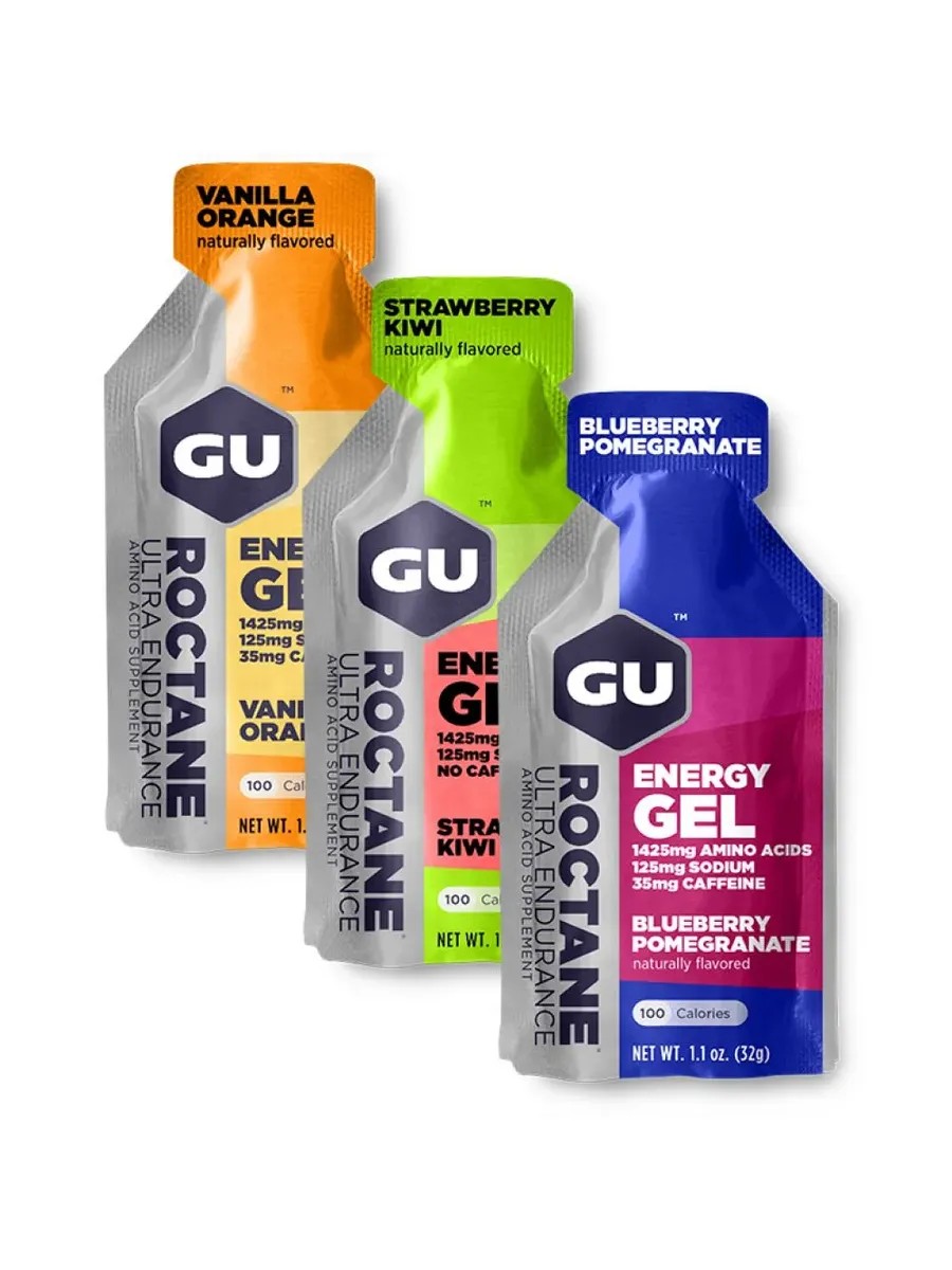 The Roctane energy gel from the American brand GU Energy Labs is designed specifically for competitions and intense training. It provides maximum energy over a long distance with two types of carbohydrates—maltodextrin and fructose. It also contains an increased amount of BCAAs (1425 mg) (leucine, valine, and isoleucine), 125 mg of sodium (an essential electrolyte), and potassium or calcium (depending on flavor). Contains Taurine, which supports heart function, and Beta-Alanine, which promotes carnosine formation (prevents the accumulation of muscle breakdown products). The compact gel form in a convenient package weighing only 32 grams is easy to take with you on a distance run. One serving of GU Roctane energy gel contains: 23 g carbohydrates, 100 kcal, 125 mg sodium, 40 mg calcium. Does not contain WADA prohibited substances. Recommended use: 1 serving 5 minutes before training and then every 45 minutes. When you finish an intense workout, consume one gel, even if it's been less than 30 minutes since your last gel. Now that you've stopped training, your stomach can process these calories and needs them to begin replenishing your muscle glycogen—the body's energy storehouse. Always maintain your hydration levels. Try to drink every 15 minutes during your workout. Our store is the sole exclusive distributor of GU Energy Labs products in Russia. GU Energy Gel has been the choice of professional athletes since 1993.