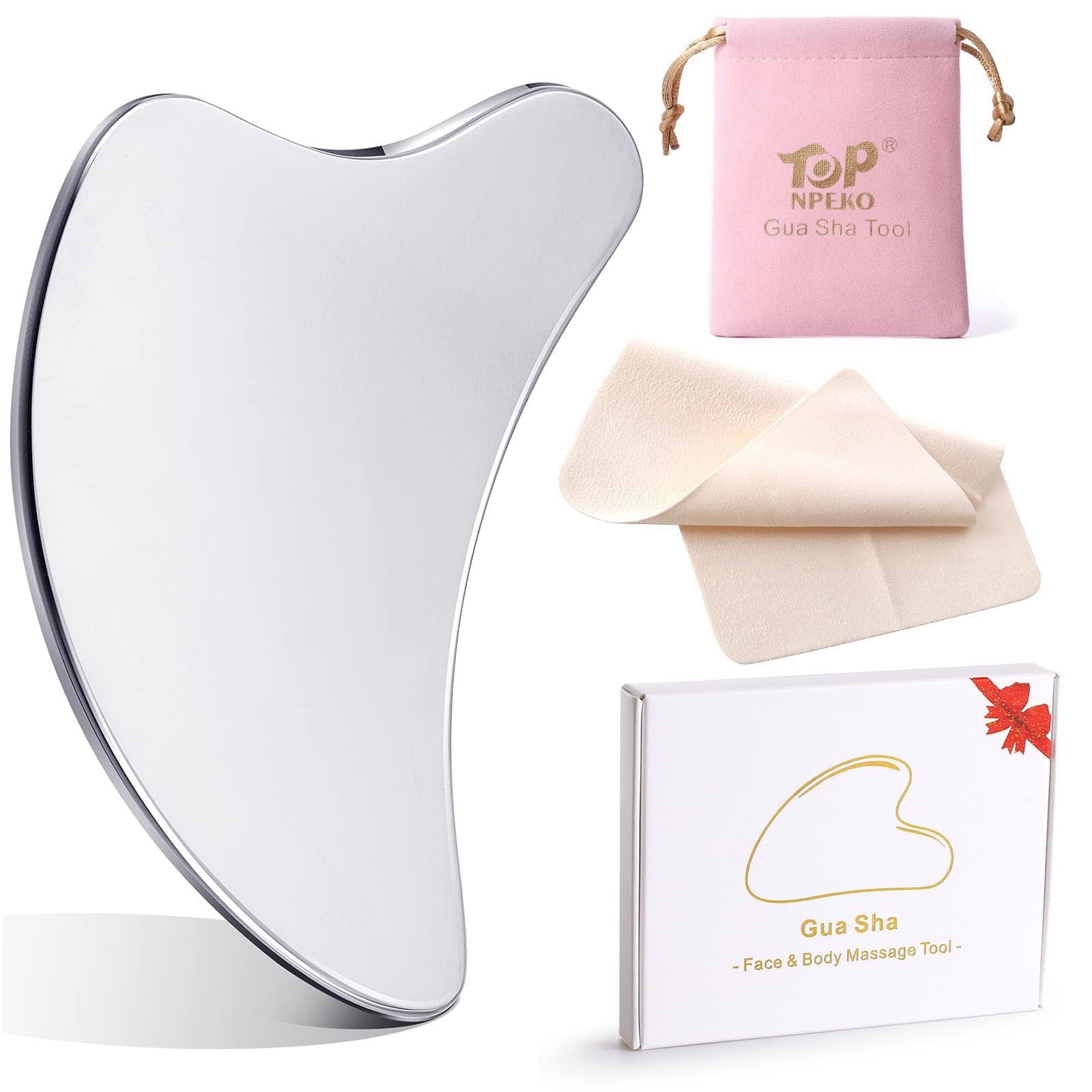 Gua Sha facial tool✓ SACE and travel -friendly: our Gua Sha made of polished stainless steel, with a mirror -like surface, is delivered in a small box with a velvet bag with a pull tape and a cloth.It can be easily taken in your pocket so that you can enjoy the advantages of a massage everywhere.✓ Multifunctional massage: The Gua Sha tool for the whole can be applied to the face, back, legs, wrists, arms, the neck and even shoulders Free yourself from muscle tension and improve lymphatic drainage with the Gua Sha massage ritual It is effective to promote blood circulation, for the treatment of soft tissue injuries, to remove moisture and pain relief.✓ Perfect size and shape: With a compact size of 9 x 5.6 cm, it is optimally shaped for the massage of different body parts.The ergonomic design and the smooth edges make it easy to grip and gently slide over the skin, for a comfortable and problem -free massage experience.✓ Excellent material: The Gua SHA consists of 100 high-quality stainless steel and is colder, cleaner and more resistant than stone, jade or buffalo horn massage for scraping.You don't have to put it in the freezer because it has a self -cooling function.You don't need to worry that it will always be held for it.✓ facial lifting: Our Gua SHA made of stainless steel supports in relieving the skin in the course of derves and to consolidate, tensioning of wrinkled eyebrows and tense pine, reducing overactive facial muscles and fighting dynamic folds.It offers a cooling effect while sliding over her skin and is safe and effective for all skin types.Gua Sha Gesichtswerkzeug✓ Tragbar und reisefreundlich: Unser Gua Sha aus poliertem Edelstahl, mit einer spiegelähnlichen Oberfläche, wird mit einem Samtbeutel mit Zugband und einem Tuch in einer kleinen Box geliefert. Es kann problemlos in Ihrer Tasche mitgenommen werden, sodass Sie die Vorteile einer Massage überall genießen können. ✓ Multifunktionaler Massager: Das Gua Sha Werkzeug für den ganzen kann auf das Gesicht, den Rücken, die Beine, Handgelenke, Arme, den Nacken und sogar die Schultern aufgetragen werden Befreien Sie sich von Muskelverspannungen und verbessern Sie die lymphatische Entwässerung mit dem Gua Sha Massage-Ritual Es ist wirksam zur Förderung der Durchblutung, zur Behandlung von Weichteilverletzungen, zur Entfernung von Feuchtigkeit und zur Schmerzlinderung. ✓ Perfekte Größe und Form: Mit einer kompakten Größe von 9 x 5,6 cm ist es optimal geformt für die Massage verschiedener Körperteile. Das ergonomische Design und die glatten Kanten machen es leicht zu greifen und gleiten sanft über die Haut, für ein komfortables und problemloses Massageerlebnis. ✓ Exzellentes Material: das Gua Sha besteht zu 100 aus hochwertigem Edelstahl und ist kälter, sauberer und widerstandsfähiger als Stein-, Jade- oder Büffelhorn-Massager für das Schaben. Sie müssen es nicht ins Gefrierfach legen, da es über eine selbstkühlende Funktion verfügt. Sie brauchen sich keine Sorgen zu machen, dass es - es wird für immer halten. ✓ Gesichtslifting: Unsere Gua Sha aus Edelstahl unterstützt dabei, die Haut im Laufe deraffen und zu festigen, Verspannungen von gerunzelten Augenbrauen und angespannten Kiefern zu lindern, überaktive Gesichtsmuskeln zu reduzieren und dynamische Falten zu bekämpfen. Sie bietet eine kühlende Wirkung, während sie über Ihre Haut gleitet und ist für alle Hauttypen sicher und effektiv.