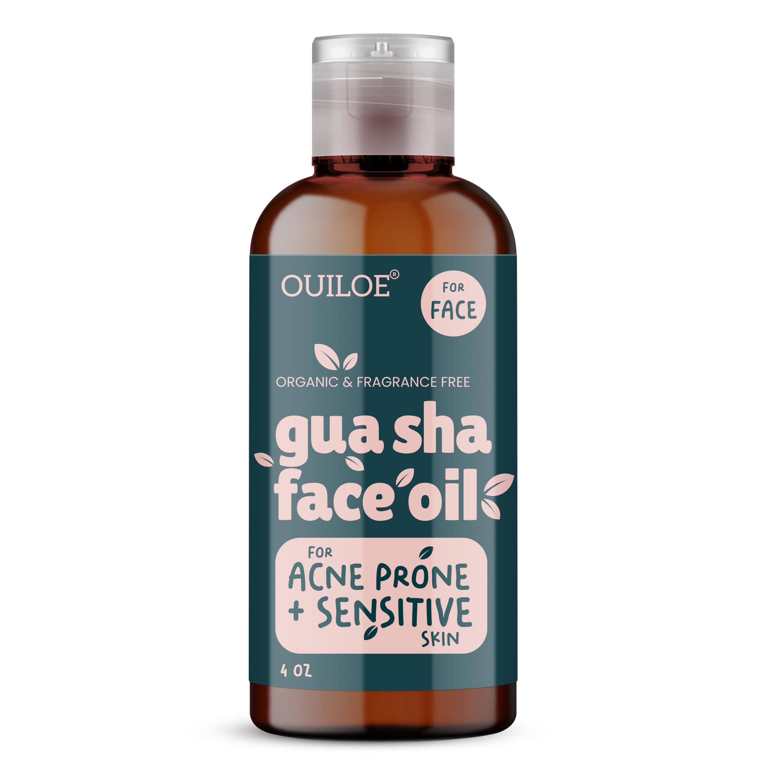 Gua Sha Oil for Sensitive and Acne Prone Skin - Face Oil Gua Sha Massage - Lymphatic Massage Oil for Face - Non Comedogenic Fragrance Free Natural & Non Greasy 4oz by Ouiloe