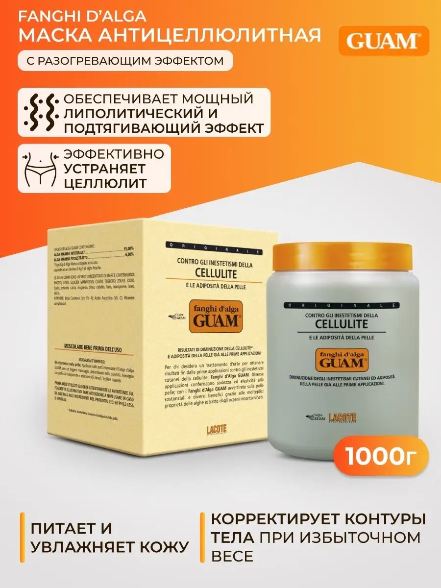 A "mustard plaster effect" for the first 15-20 minutes and slight redness of the skin are normal. The exposure time is 45 minutes. Then rinse the mask with warm water without using cleansers. To enhance the effectiveness of the wrap, apply GUAM anti-cellulite cream or firming gel. Not recommended for use in the presence of vascular pathology (varicose veins, spider veins), during exacerbations of gynecological diseases, or during pregnancy. Do not apply to the lymph nodes (popliteal, inguinal, axillary), kidneys, abdomen, or waist.