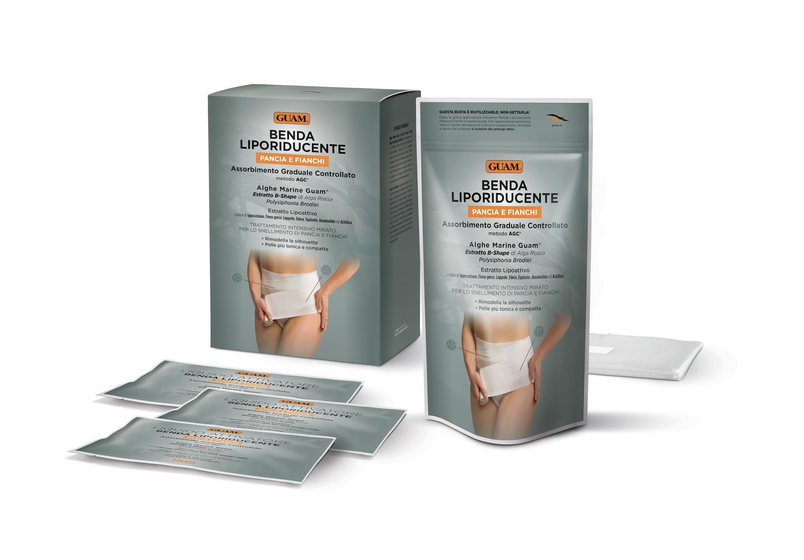 Guam Lipid-Riding Bandage for Abdomen and Hips with Controlled Progressive Absorption (AGC ) is a reusable bandage that soaks up the activating liquid. This bandage combines the slimming power of Guam seaweed with a blend of active ingredients that sculpt the body, reducing localized fat deposits on the abdominal area. SAFETY WARNING For external use only. Do not swallow. Keep out of reach of children. Do not use if allergic to any of the product's ingredients and or on broken or irritated skin.3) Put on the protective shorts, securing them with a knot above your waist, and leave them on for 30 minutes. During this time, you can wear comfortable clothing and carry out your normal daily activities. After the application time, remove the reusable multi-purpose shorts, unroll the bandage, and massage any remaining lipo-activating liquid into the skin to ensure complete absorption of the active ingredients. After application, wash the bandage and, once dry, store it in the resealable envelope, where it will be ready for the next application. 1) Open the resealable envelope containing the elastic bandage and slowly pour the lipo-activating liquid onto the side of the bandage. Allow the liquid to be absorbed, taking care to press the bandage several times with your fingers to smooth the outer layers, which are the ones that come into contact with the skin. 2) Wait approximately 15 minutes before applying, then remove the bandage from its wrapping and wrap it around the abdominal area, securing it with the appropriate fasteners. The lipoactive extract, based on horse chestnut, fenugreek, hops, ivy, horsetail, and witch hazel, known for their antioxidant, firming, and toning properties, enhances the slimming effect for firmer, more toned skin. The B-Shape extract of red algae Polysiphonia Brodiei has lipolytic, "fat-dissolving" activity that eliminates body contours by stimulating lipolysis. With the AGC method, the lipo-activating liquid is absorbed gradually through the bandage, starting with the outermost layers and working towards the innermost. The quantity and texture of the Liporidant activating liquid have been carefully formulated for optimal absorption, ensuring maximum concentration of the active ingredients in contact with the skin.Guam Bandage liporidatif ventre et hanches, lot de 3 traitementsDESCRIPTION DU PRODUIT DESCRIPTION DU PRODUIT Guam Bandage liporidant ventre et hanches à absorption progressive contrôlé méthode exclusive AGC est un bandage réutilisable qui imbibe avec le liquide activateur allie au pouvoir amincissant des algues marines Guam un mélange d'actifs à action remodelante, qui contraste les adiposités localisées sur la zone du ventre. AVERTISSEMENT DE SÉCURITÉ Usage extérieur. Ne pas avaler. Tenir hors de portée des enfants. Veillez à ne pas utiliser en cas d'allergie aux ingrédients du produit et ou sur une peau lésée ou irritée.3) Portez le short de protection en le fixant avec un nœud au-dessus de la taille et laissez poser 30 minutes. En ce temps, vous pouvez porter des vêtements confortables et effectuer en toute tranquillité les gestes quotidiens normaux. Après le temps de pose, retirez le short multi-usage réutilisable, dérouler le bandage et massez l'éventuel résidu de liquide lipo-activateur pour faire absorber complètement les principes actifs de la peau. Après l'application, lavez le bandage et, une fois sec, rangez-le dans l'enveloppe ouvrir fermez, où il sera prêt pour l'application suivante. 1) Ouvrez l'enveloppe ouvrire fermer contenant le bandage élastique et versez le liquide lipo-activateur lentement sur le côté du bandage. Laisser absorber le liquide en prenant soin de presser plusieurs fois le bandage avec les doigts afin de moudre les couches extérieures, qui sont celles qui entrent en contact avec la peau. 2) Attendez environ 15 minutes avant de procéder à l'application, puis retirez le bandage de l'enveloppe et enroulez sur la zone abdominale, en l'arrêtant avec les crochets de fixation appropriés. L'extrait lipoactif à base de marronnier, fenugrec, houblon, lierre, prêle et amamélis, connus pour leur action antioxydante, raffermissante et tonifiante, renforce l'effet amincissant pour une peau plus tonique et compacte. L'extrait B-Shape d'algue rouge Polysiphonia Brodiei possède une activité lipolytique « dissoudre les graisses » qui élimine les contours du corps en stimulant la lipolyse. Avec la méthode AGC, le liquide lipo-activateur est absorbé par le bandage progressivement, en commençant par les couches les plus extérieures jusqu'aux plus internes. La quantité et la texture du liquide Liporidant activateur ont été étudiées pour une absorption idéale qui garantit la concentration maximale des principes actifs au contact de la peau.