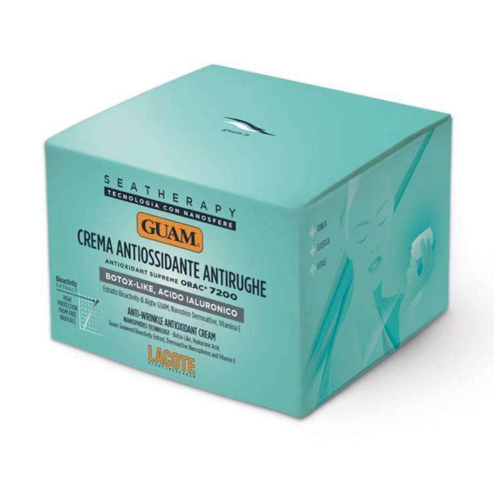GUAM COSMETICS: Guam is well known in Europe for its exceptional quality, ingredients safety, and efficiency. With over 35 years of expertise in the body repair industry, GUAM products originated in Italy and continues to perfect its premium skincare products with constant research and clinical studies. PEPTIDE ANTIOXIDANT CREAM: Hyaluronic acid, vitamin E C, and other emollient actives not only keep the aging skin deeply hydrated and moisturized. Peptides work to nourish, repair, and renew skin cells, encouraging a younger-looking complexion. the natural UV-protecting agent Octocrylene makes it an ideal daily face moisturizer. Together all these ingredients form an effective fusion that allows the skin to bloom and helps to get rid of saggy, uneven, dull, and dehydrated complexion. ANTI WRINKLE FACE CREAM: Since oxidative stress is one of the major causes of wrinkles and other signs of aging, this complex shields the cells against free radicals and other damaging external factors. Dermoactive Nano-spheres in Guam anti wrinkle cream generates quick and unique anti aging action by attaching to the fibroblasts and facilitating the production of elastin and collagen. Moisturizes and balances face skin, restores elasticity, and improve the appearance of fine lines. HYALURONIC ACID FACIAL: Hyaluronic acid naturally present in our skin but its production decreases with aging, generation a progressive loss in skin tone and brightness. These organic hyaluronic acids with reduced molecules size during the formulation process can penetrate deep layers of the skin to fully hydrate the dermis, visually plumping out face lines and wrinkles for anti aging face skin care. SKIN MOISTURIZER: Guam Antioxidant Anti Aging Cream is specially designed to provide a fast anti aging effect. The formula is abundantly filled with bioactive compounds aimed at repairing, restoring, moisturizing, and hydrating the skin. The extraction process of the Guam Bioactivity Complex produces three times greater antioxidants powers as compared to ordinary seaweed extract.