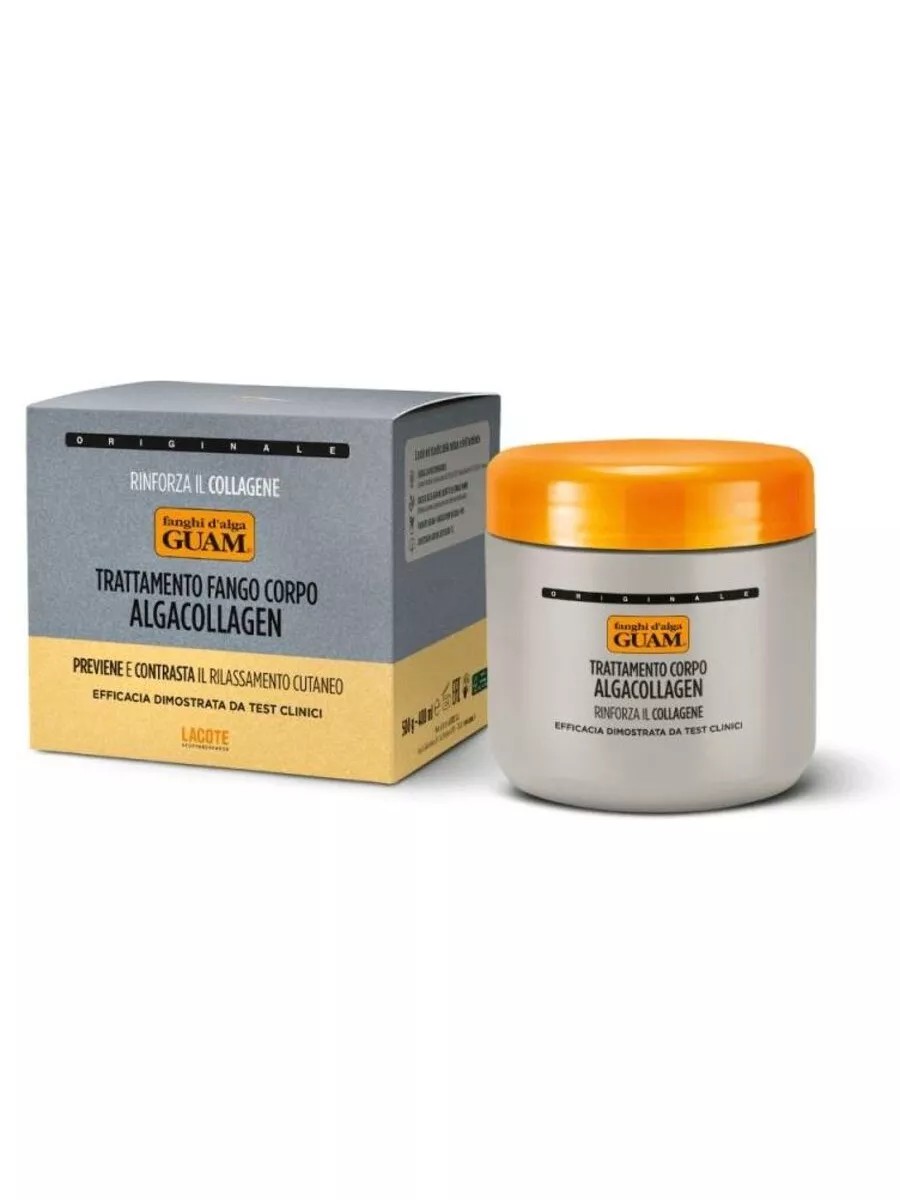 The AlgaCollagen/Marine Collagen complex, derived from highly concentrated GUAM algae extract and micronized tourmaline, tightens, smoothes, and rejuvenates the skin, restores firmness and elasticity, and helps reduce cellulite and volume in problem areas such as the thighs, buttocks, and abdomen.