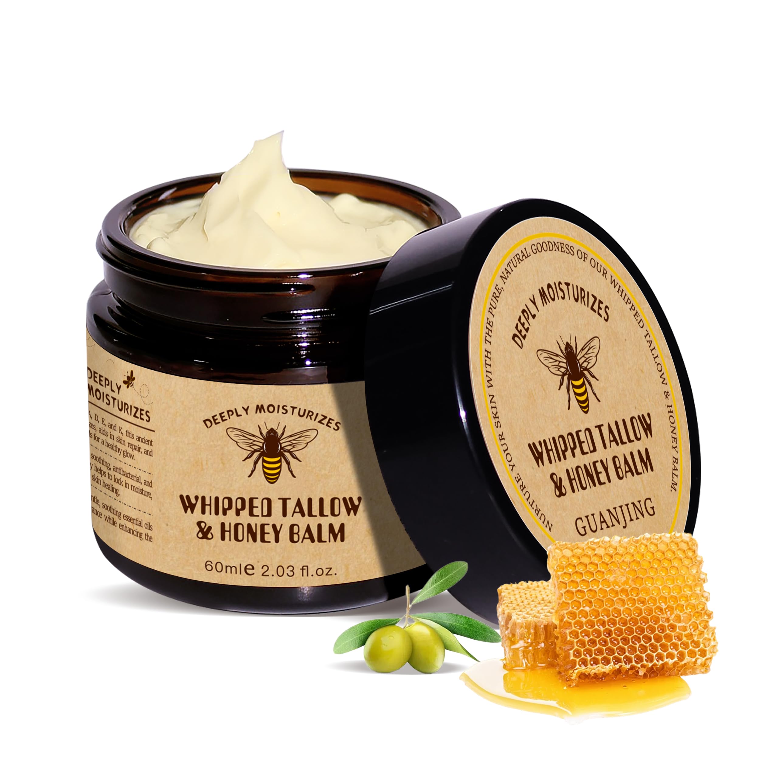 GUAN JING Natural Beef Tallow & Honey Balm Cream Ultra-Nourishing Moisturizer with Grass-Fed Tallow Hydrates & Nourishes Face Body & Hands