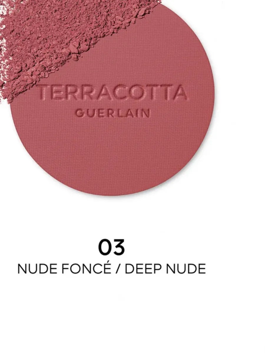 Guerlain Terracotta Blush 03 Nude Fonce / Deep Nude is the perfect blush for adding warmth and depth to your complexion, creating a natural, earthy shade. Guerlain is renowned for its mastery of creating the highest quality cosmetics, and this blush is no exception. The dry, firm, and loose texture ensures easy and even application, allowing you to achieve perfect color without overload. This deep, natural shade is perfect for creating a sophisticated and refined look, suitable for both everyday wear and special occasions. Guerlain Terracotta Blush 03 Nude Fonce / Deep Nude is your secret tool for achieving perfect makeup.