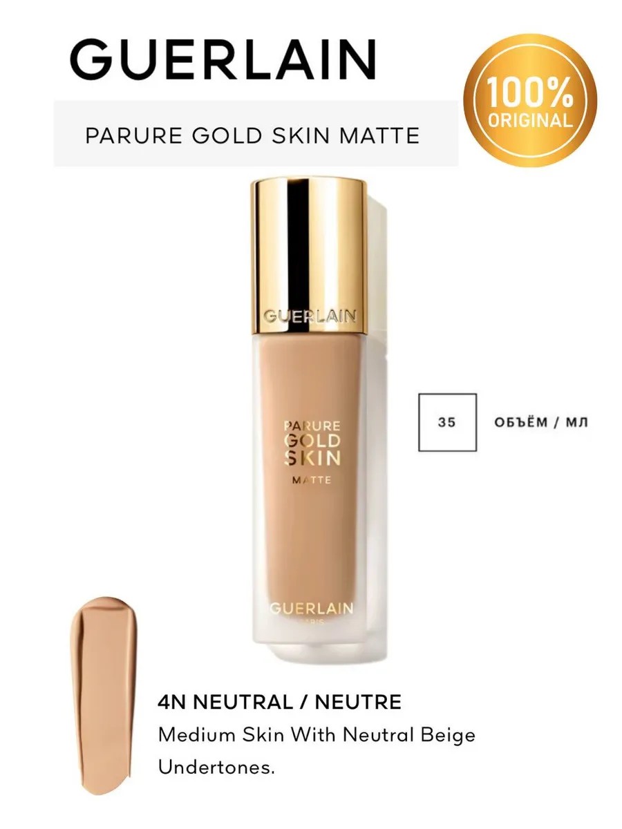 Guerlain Parure Gold Skin Matte Foundation 4N - это тональный крем, который дарит коже безупречный матовый финиш и сияние. Его легкая текстура невесомо ложится на кожу, скрывая несовершенства и выравнивая тон, при этом не забивая поры.