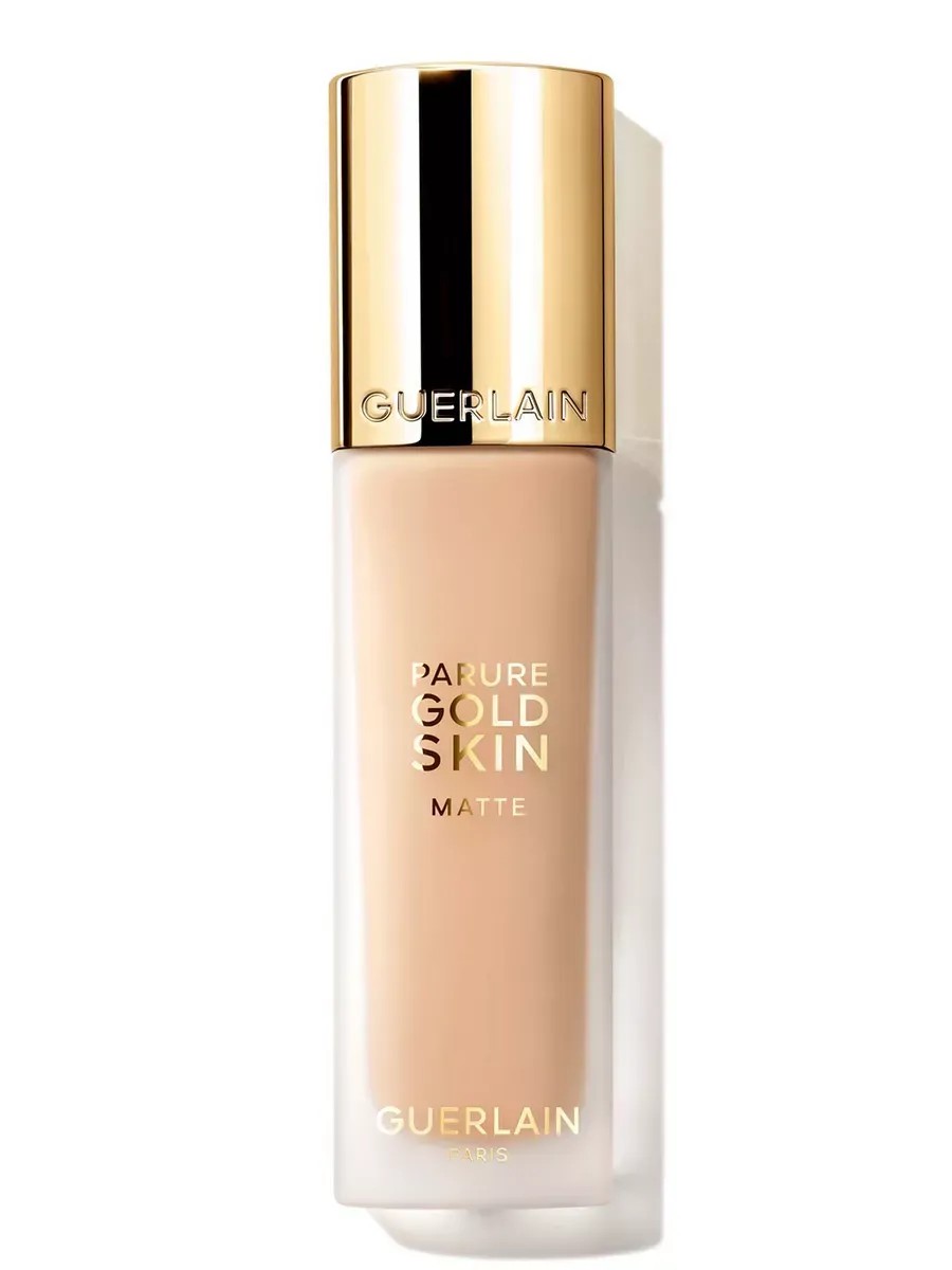 The Parure Gold Skin Matte foundation is the perfect combination of makeup and skincare. Its delicate texture contains 85% rejuvenating and caring ingredients that prolong skin's youthfulness and radiance with each application. White peony petal extract provides hydration and strengthens the skin barrier. White peony root extract helps achieve an incredibly even complexion and velvety texture. The franchise's signature precious ingredient, pure 24-karat gold, creates an incredible radiance. Natural filters protect the epidermis from UVA and UVB rays, making the foundation suitable for daily use as sun protection. The perfect formula guarantees a radiant matte finish and comfortable wear for 24 hours. Available in 14 shades, it will suit any skin tone. It is universally suitable for all skin types. The foundation bottle meets strict environmental impact reduction requirements. Foundation / foundation / light foundation / Guerlain / radiant face cream / foundation / matte finish / SPF cream / mattifying / long-lasting