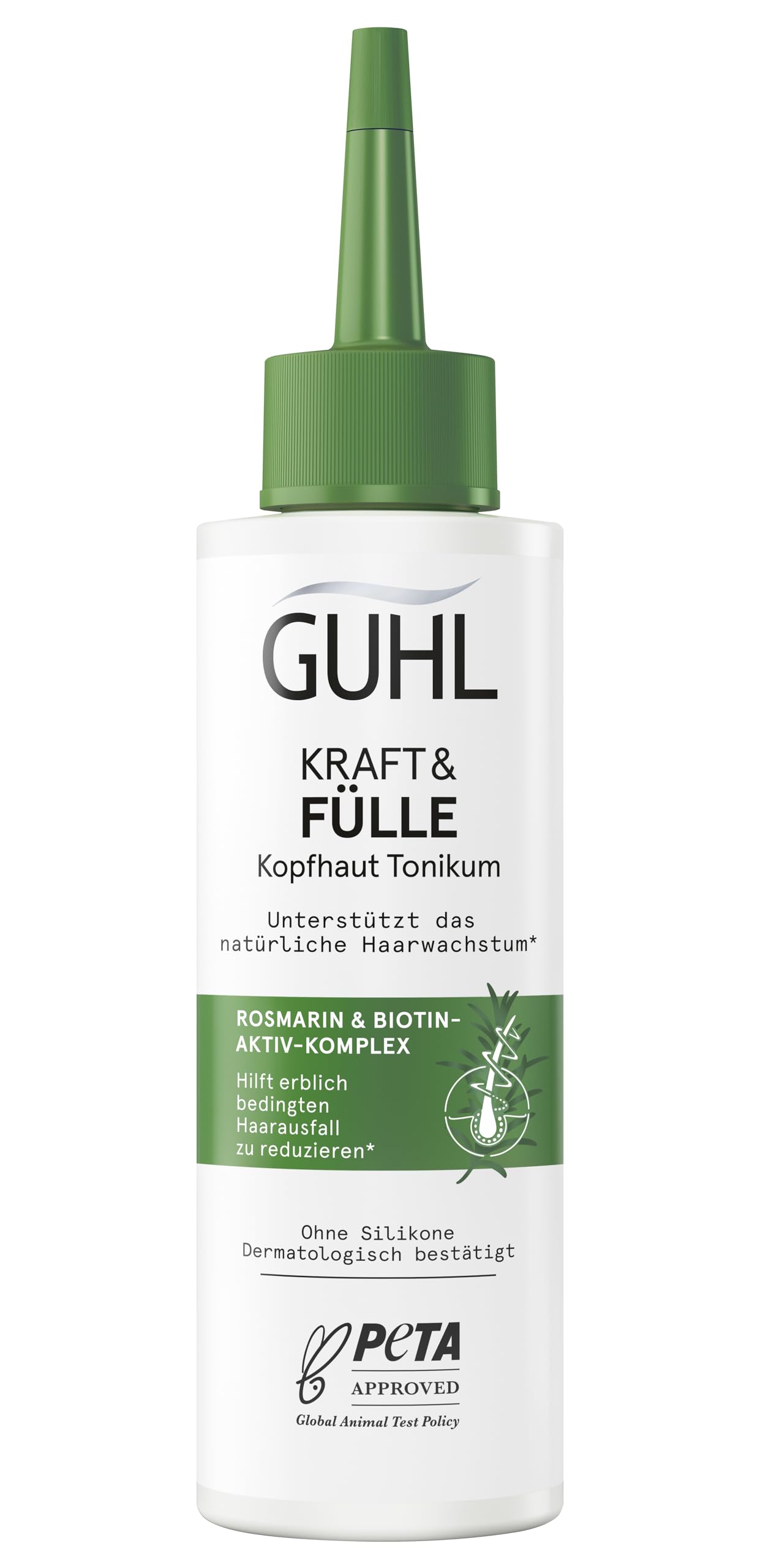 Guhl Scalp Tonic from the Vigorous Abundant line promotes natural hair growth with regular use – hair can grow back stronger. INGREDIENTS Alcohol Denat., Aqua, Dimethylhydroxy Dihydroflavone, Panthenol, Menthol, Caffeine, Glycerin, Rosmarinus Officinalis Leaf Extract, Alcohol, Lecithin, Citric Acid, Leuconostoc Radish Root Ferment Filtrate, Tocopheryl Acetate, Biotin, Tocopherol, Parfum, Limonene, Linalool, Pinene, Pogostemon Cablin Oil, Tetramethyl Acetyloctahydronaphthalenes DIRECTIONS Use regularly to promote natural hair growth. SAFETY WARNING Flammable – Avoid contact with eyes – Rinse immediately with plenty of water if product gets into eyes – Keep out of reach of children. See moreComplete Strength Volume: The line includes, in addition to the scalp tonic, a shampoo and a spray treatment. [VEGAN FORMULATION MADE IN GERMANY]: Recyclable – Bottle body made from 50 recycled materials – No animal-derived ingredients. [With revitalizing rosmarinus extract active biotin complex]: Penetrates deep into the hair root and helps stimulate it. Helps reduce hair loss: with regular use – Silicone-free. Contents: Guhl Scalp Strength Volume Tonic – Contents: 125 ml – Dermatologically tested.Guhl Force Fülle Tonique pour cuir chevelu – Volume : 125 ml – Favorise la croissance naturelle des cheveux avec une utilisation régulière – Sans siliconeDESCRIPTION DU PRODUIT DESCRIPTION DU PRODUIT Le tonique du cuir chevelu Guhl de la ligne vigoureuse et abondante favorise la croissance naturelle des cheveux avec une utilisation régulière - Les cheveux peuvent repousser plus fort INGRÉDIENTS Alcohol Denat, Aqua, Dimethylhydroxy Dihydroflavone, Panthénol, Menthol, Caffeine, Glycerin, Rosmarinus Officinalis Leaf Extract, Alcohol, Lecithin, Citric Acid, Leuconostoc Radish Root Ferment Filtrate, Tocopheryl Acetate, Biotin, Tocopherol, Parfum, Limonene, Linalool, pinène, Pogostemon Cablin Oil, Tetramethyl Acetyloctahydronaphthalenes MODE D'EMPLOI À utiliser régulièrement pour favoriser la croissance naturelle des cheveux AVERTISSEMENT DE SÉCURITÉ Inflammable - Éviter tout contact avec les yeux - Rincer immédiatement avec beaucoup d'eau en cas de contact avec les yeux - Conserver hors de portée des enfants Voir plusForce et ligne complète : la ligne comprend en plus du tonique du cuir chevelu, un shampooing et une cure de pulvérisation. [ FORMULATION VEGANE FABRIQUÉ EN ALLEMAGNE ] : recyclable – Corps de la bouteille à 50 en matériaux recyclés – Sans ingrédients d'origine animale. [ Avec extrait de rosmarine vitalisant Complexe actif de biotine ] : pénètre profondément dans la racine du cheveu et aide à la stimuler. Aide à réduire la chute des cheveux : en cas d'utilisation régulière - Sans silicone. Contenu de la livraison : tonique Guhl Force Volume du cuir chevelu – Contenu : 125 ml – Testé sous contrôle dermatologique.