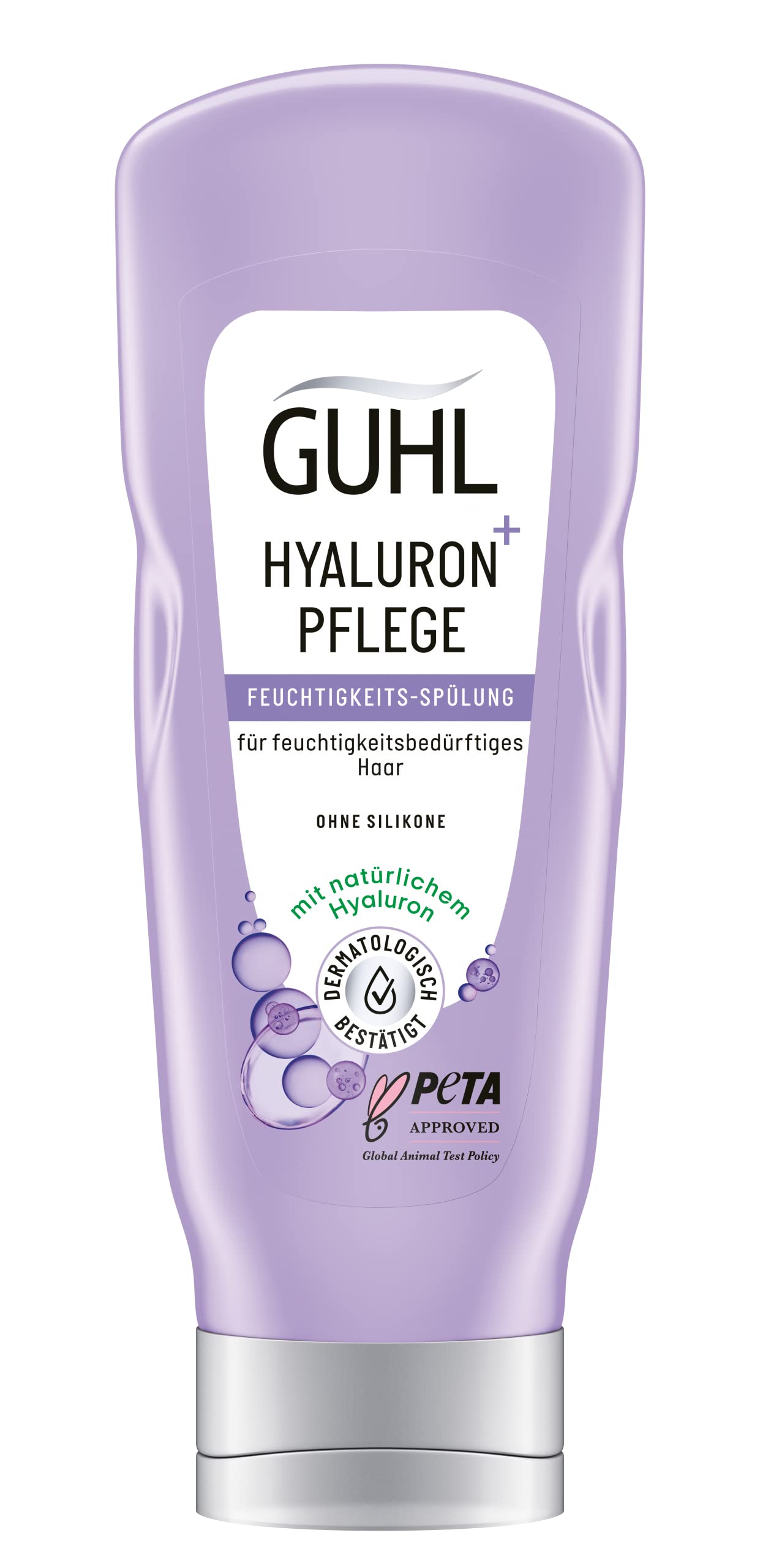 GUHL HYALURON CARE: the range for dry and dehydrated hair - Composed of shampoo, conditioner, and spray - With natural hyaluronic acid from sugar beet and wheat - For vibrant, healthy, shiny hair - Dermatologically tested - Vegan formulations. No animal-derived ingredients - Made in Germany INGREDIENTS Aqua, Cetearyl Alcohol, Cetyl Ester, Glycerin, Behenamidopropyl Dimethylamine, Triheptanoin, Cetrimonium Chloride, Lactic Acid, Erythritol, Panthenol, Tetrasodium Glutamate Diacetate, Ethylhexylglycerin, Glycine, Hydrolyzed Hyaluronic Acid, Sodium Hyaluronate, Phenoxyethane, Fragrance DIRECTIONS Apply to wet hair after shampooing, leave on for a few minutes, then rinse. Use regularly for best results. A small amount is all you need. See moreHyaluronic Care Range: The range includes shampoo, conditioner, and spray serum – for soft, healthy, weightless, shiny hair. Our promise: Dermatologically proven – Particularly economical – PETA certified Cruelty-free – Vegan formula – Made in Germany. Natural Hyaluronic Acid: Known for its moisturizing properties – Our natural hyaluronic acid is extracted from sugar beets and wheat. [2x more effective]: Provides immediate and long-lasting hydration with regular use – Particularly economical. Contents: Guhl Hyaluron conditioner for hair needing moisture.Guhl Après-shampoing hydratant Hyaluron - Volume : 200 ml - Type de cheveux : besoin d'humidité - Avec de l'acide hyaluronique naturel - Sans siliconeDESCRIPTION DU PRODUIT DESCRIPTION DU PRODUIT GUHL HYALURON SOINS : la gamme pour cheveux secs et déshydratés - Composé de shampooing, d'après-shampoing et de spray - Avec de l'acide hyaluronique naturel de betterave sucrière et de blé - Pour des cheveux dynamiques et sains brillants - Testé dermatologiquement - Formulations végétaliennes. Sans ingrédients d'origine animale - Fabriqué en Allemagne INGRÉDIENTS Aqua, alcool cétéarylique, ester de cétyle, glycérine, behenamidopropyl diméthylamine, triheptanoïne, chlorure de cétrimonium, acide lactique, érythritol, panthénol, tétrasodium glutamate diacetate, éthylhexylglycérine, glycine, acide hyaluronique hydrolysé, sodium hyaluronate, phénoxyéthane. ol, parfum MODE D'EMPLOI Appliquer sur cheveux humides après le shampooing, laisser agir quelques minutes, puis rincer. Utiliser régulièrement pour de meilleurs résultats. Une petite quantité suffit. Voir plusGamme de soins hyaluroniques : la gamme comprend shampooing, après-shampoing et sérum en spray - Pour des cheveux souples et sains brillants en apesanteur. Notre promesse : confirmée dermatologiquement - Particulièrement économique - Certifié PETA Sans expérimentation animale - Formule végétalienne - Fabriqué en Allemagne. Hyaluronique naturel : connu pour ses propriétés hydratantes - Notre acide hyaluronique naturel est extrait de la betterave à sucre et du blé. [ Effet 2 fois plus efficace ] : offre une hydratation immédiate et durable en cas d'utilisation régulière - Particulièrement économique. Contenu de la livraison : après-shampoing Guhl Hyaluron pour cheveux ayant besoin d'humidité.