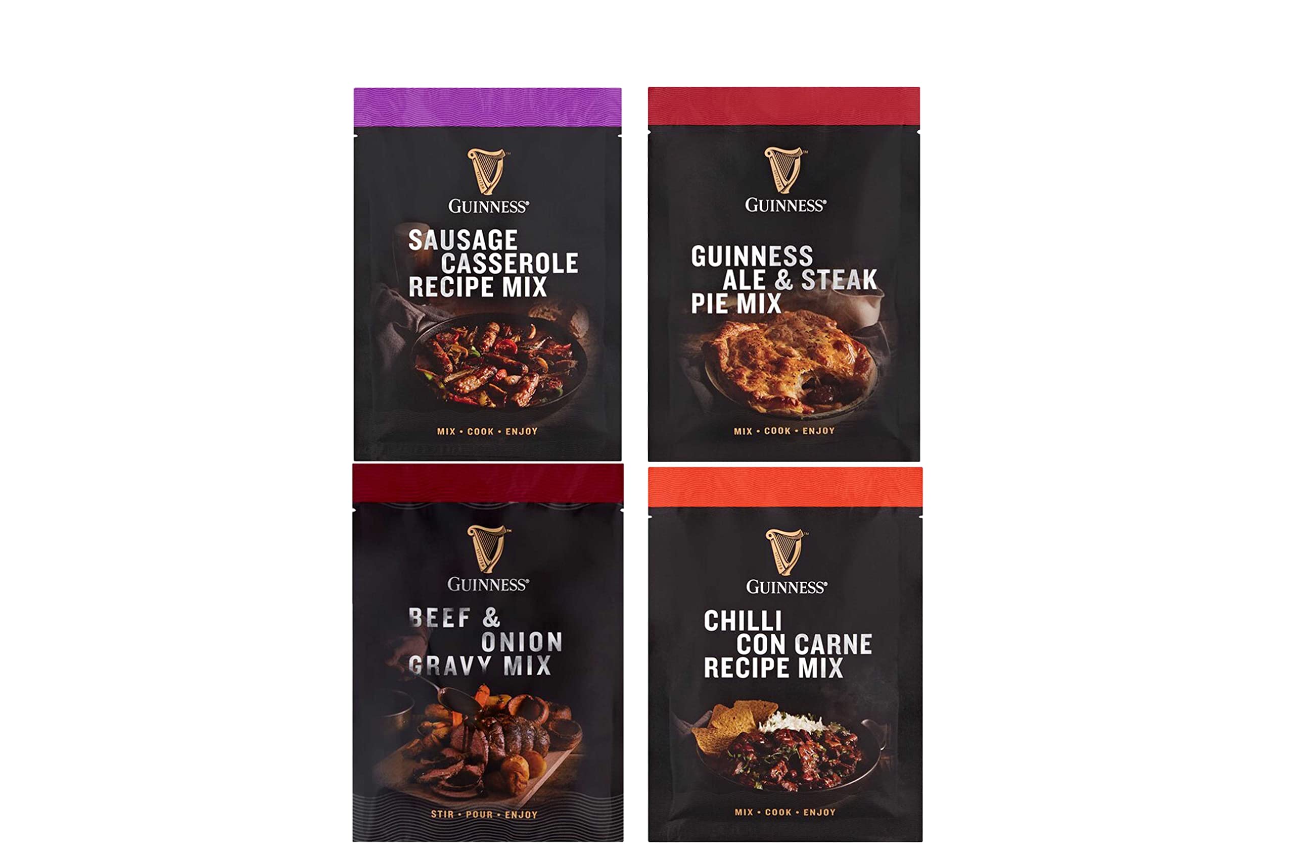 We are firm believers that Guinness is not only the world’s best drink, it’s also a game changing way to elevate your cooking. From party food to midweek dinners, Christmas entertaining and lazy weekend lunches, we’ve got an encyclopaedia full of recipes to add that Guinness magic to any occasion. A rich, smoky chilli con carne with the distinctive essence of Guinness. Create this hearty chilli in under 30 minutes with a delicious depth of flavour that tastes like it's been simmering for hours. A delicious twist on the humble sausage casserole. This rich, smoky gravy with the distinctive flavour of Guinness creates the ultimate in satisfying comfort food. A deliciously rich, luxuriously thick beef flavour gravy, with the familiar essence of Guinness to take your family favourite meals to the next level. Deliciously rich and comforting, this homemade Steak & Ale Pie recipe with the essence of real Guinness is a pub classic sure to please everyone around the table. INGREDIENTS Steak & Ale Pie - Wheat Flour (Wheat Flour, Calcium Carbonate, Iron, Niacin, Thiamin), Maize Starch, Natural Flavourings, Maltodextrin, Salt, Sugar, Barley Malt Extract, Guinness® Powder (3%) (Maltodextrin, Guinness® Beer (Water, Malted Barley, Barley, Roasted Barley, Hops)), Yeast Extract (Yeast Extract, Salt), Dried Onion, Dried Garlic, Rapeseed Oil Sausage Casserole - Wheat Flour (Wheat Flour, Calcium Carbonate, Iron, Niacin, Thiamin), Maize Starch, Natural Flavourings, Salt, Maltodextrin, Sugar, Dried Tomato, Guinness® Powder (3%) (Maltodextrin, Guinness® Beer (Water, Malted Barley, Barley, Roasted Barley, Hops)), Barley Malt Extract, Yeast Extract (Yeast Extract, Salt), Dried Onion, Dried Garlic, Rapeseed Oil, Dried Parsley, Ground Black Pepper Chilli Con Carne - Ground Spices (Paprika, Cumin, Coriander, Chipotle Chilli (3%), Smoked Paprika, Chilli Powder), Wheat Flour (Wheat Flour, Calcium Carbonate, Iron, Niacin, Thiamin), Maize Starch, Dried Tomato, Salt, Natural Flavourings, Maltodextrin, Sugar, Guinness® Powder (3%) (Maltodextrin, Guinness® Beer (Water, Malted Barley, Barley, Roasted Barley, Hops)), Dried Garlic, Dried Onion, Yeast Extract (Yeast Extract, Salt), Dried Oregano Leaves, Rapeseed Oil Beef & Onion Gravy - Wheat Flour (Wheat Flour, Calcium Carbonate, Iron, Niacin, Thiamin), Dried Glucose Syrup, Maize Starch, Natural Flavourings, Sugar, Salt, Barley Malt Extract, Dried Onion, Rapeseed Oil, Guinness® Powder (Maltodextrin, Guinness® Beer (Water, Malted Barley, Barley, Roasted Barley, Hops)), Dried Garlic, Puremami Powder (Maltodextrin, Smoked Yeast Extract, Mushroom Powder), Ground Black PepperPack size: 40G. Suitable for vegetarians. Mix, Cook, Enjoy.