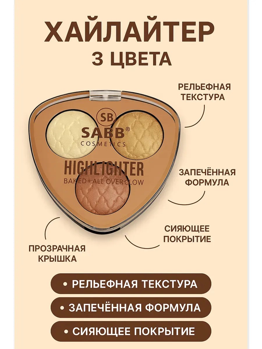 Запечённый хайлайтер универсальная палетка из трёх оттенков (перламутровый, золотистый, розово-бронзовый), которая идеально подойдёт для создания сияющего макияжа. Лёгкая текстура плавно ложится на кожу, не осыпается и подчёркивает естественную красоту. Подходит для лица, зоны декольте и тела.