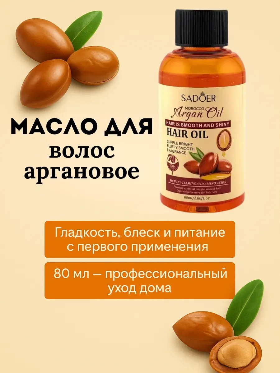 Масло для волос — профессиональный уход с аргановым маслом для гладкости, блеска и восстановления волос. Продукт глубоко питает и увлажняет волосы от корней до кончиков, делая их мягкими, послушными и шелковистыми.