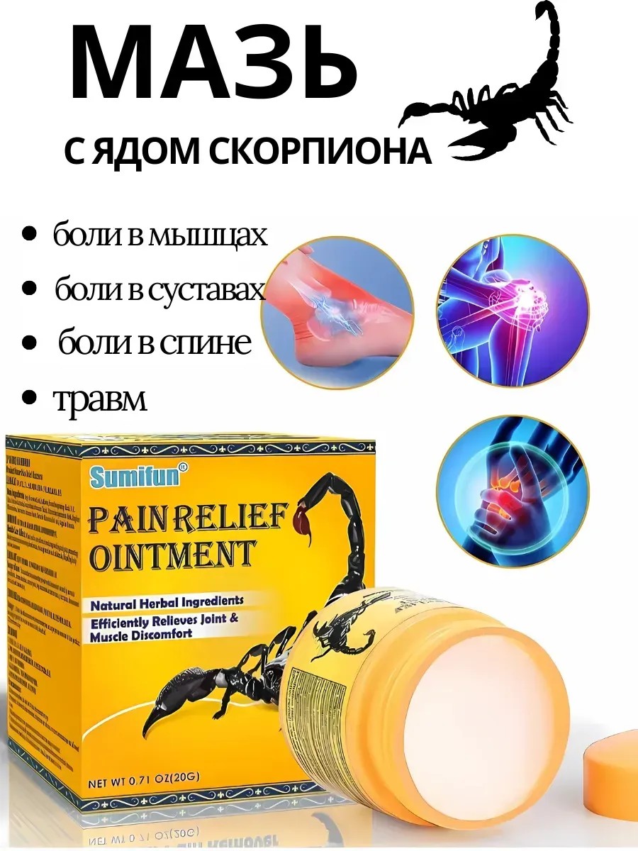 | Комплектация | китайская мазь от боли в суставах с ядом скорпиона |