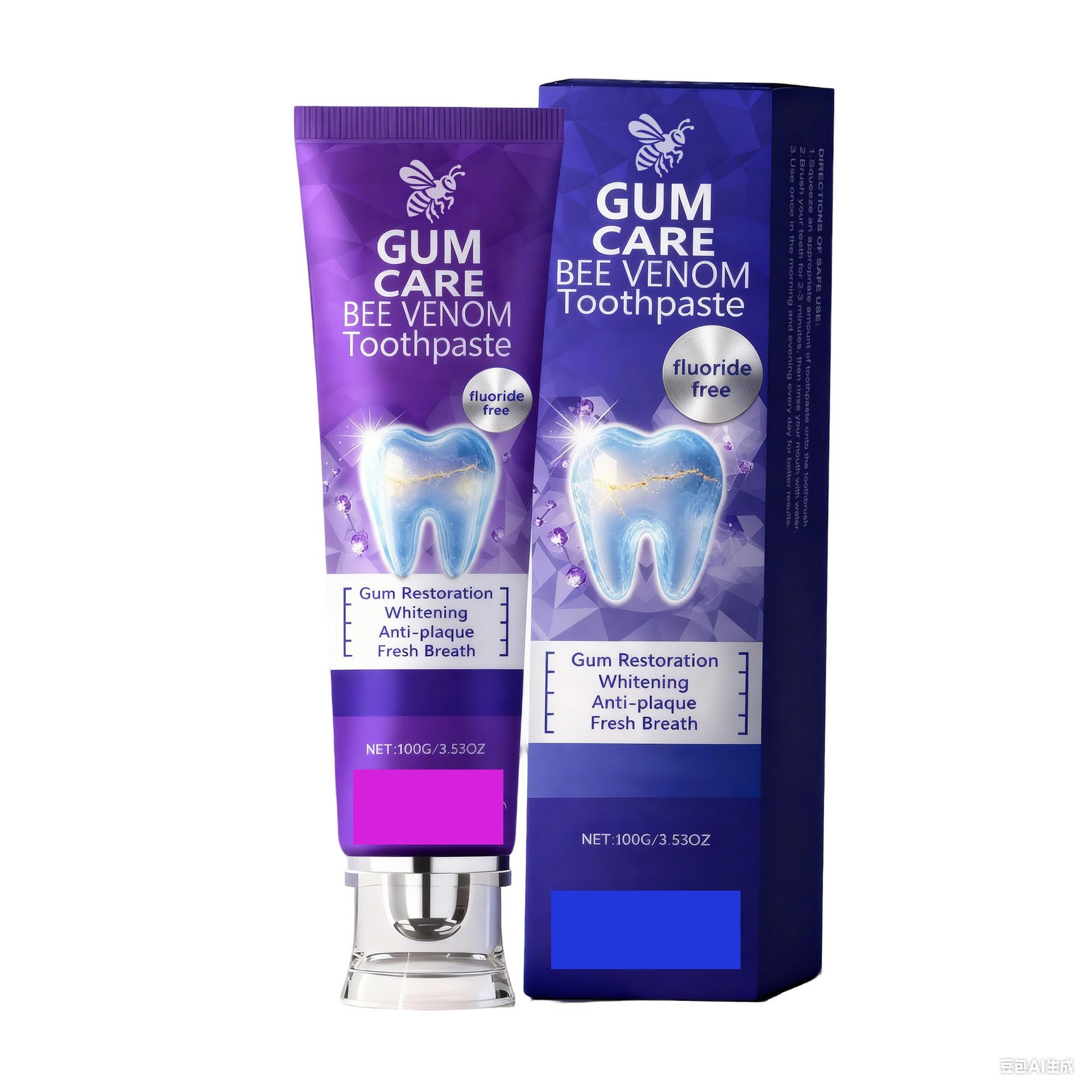 CONVENIENT SIZE: 100g (3.53oz) tube provides long-lasting use with optimal amount for daily brushing routine. GUM HEALTH SUPPORT: Specially formulated to promote gum restoration and maintain healthy gum tissue with bee venom ingredients. WHITENING POWER: Helps remove stains and yellowing to restore natural tooth brightness and improve overall smile appearance. MULTI-BENEFIT ACTION: Combines gum restoration, teeth whitening, anti-plaque protection, and fresh breath benefits in one comprehensive formula. FLUORIDE FREE FORMULA: Natural bee venom toothpaste provides effective oral care without fluoride for those seeking alternative dental hygiene options.