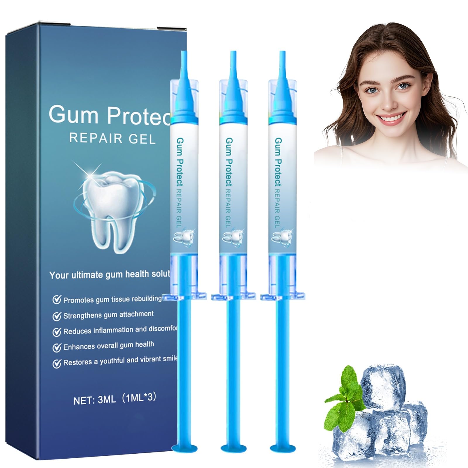 [Daily Maintenance]: The gum repair gel is designed for daily cleaning, effectively strengthening teeth and gums. We recommend using it regularly 30 minutes before sleeping and 30 minutes before leaving home in the morning. [Easy Application]: Package includes three 1ml gel. Each Gum Gel has a convenient brush tip for easy and precise application of problem areas. [Gentle and Soothing Formula]: Gum Repair Gel is made with pure natural plant extracts that help calm irritated gums and refresh breath for lasting comfort. [Repair Gum Health]: Reduce discomfort and foster a favorable environment for gum regeneration with our Gum Care Gel, supporting overall gum health and vitality. [Gums Care Gel]: Gum Protect Dental Repair Gel provides a soothing and rejuvenating experience for your gums. The gel helps restore the proper gum attachment.