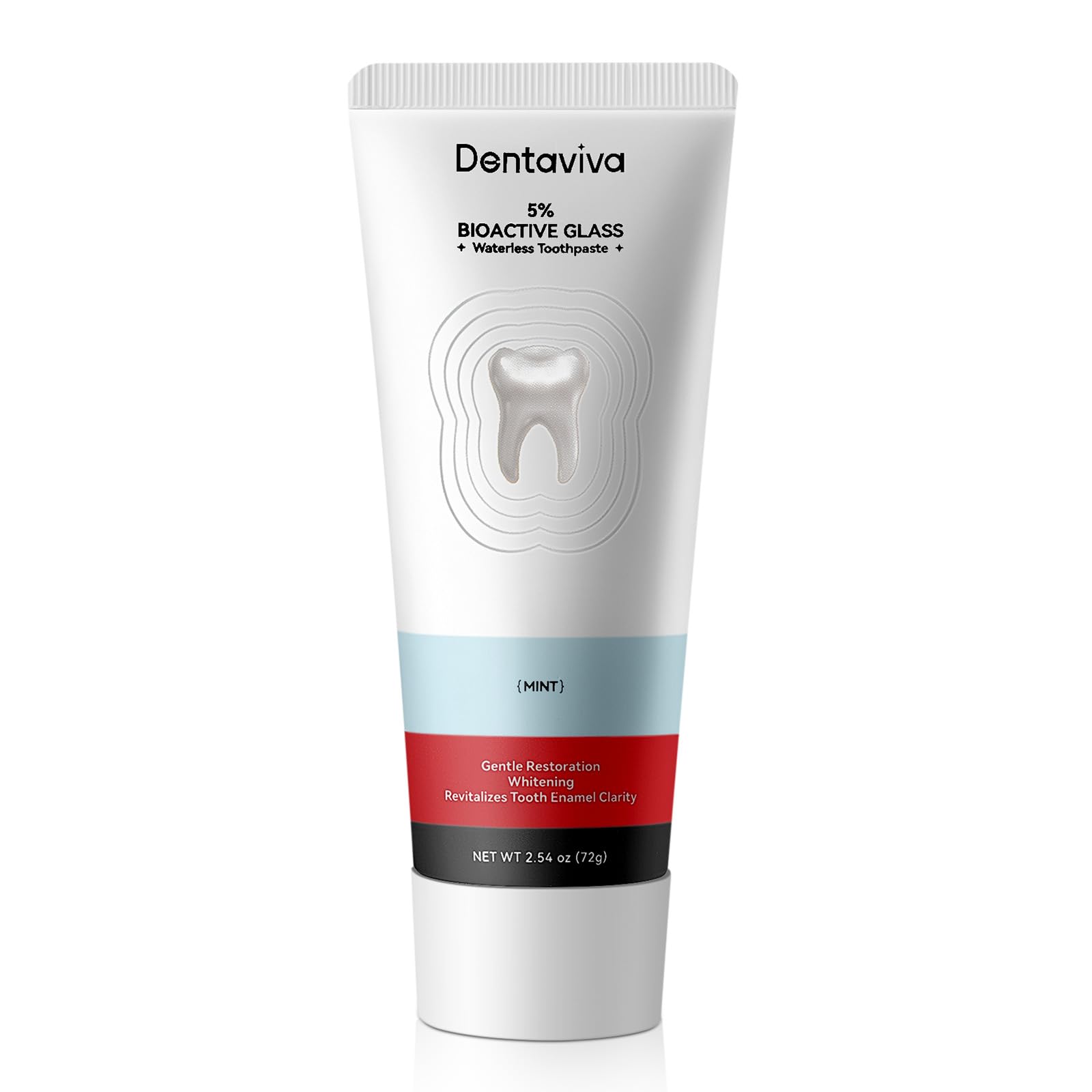 : DentaViva uses natural ingredients, free from SLS, fluoride, preservatives, colors, and flavors. It's cruelty-free and prioritizes your dental health. : Calcium Sodium Phosphosilicate blocks tooth tubules and temporarily numbs nerves, helping relieve oral ulcers. : Sodium phytate seals enamel, prevents decay, and reduces cavities by forming a protective film. It enhances the oral environment and freshens breath. : Reduces plaque and gingivitis (affecting 70-90 of people) by brushing twice daily with our toothpaste. : DentaViva toothpaste prevents plaque, removes stains, and brightens teeth for a natural white smile. Infused with mint, it refreshes breath and provides a gentle, nature-like sensation. : DentaViva toothpaste with Calcium Sodium Phosphosilicate forms active hydroxyapatite, bonding strongly with teeth to help repair and strengthen enamel.