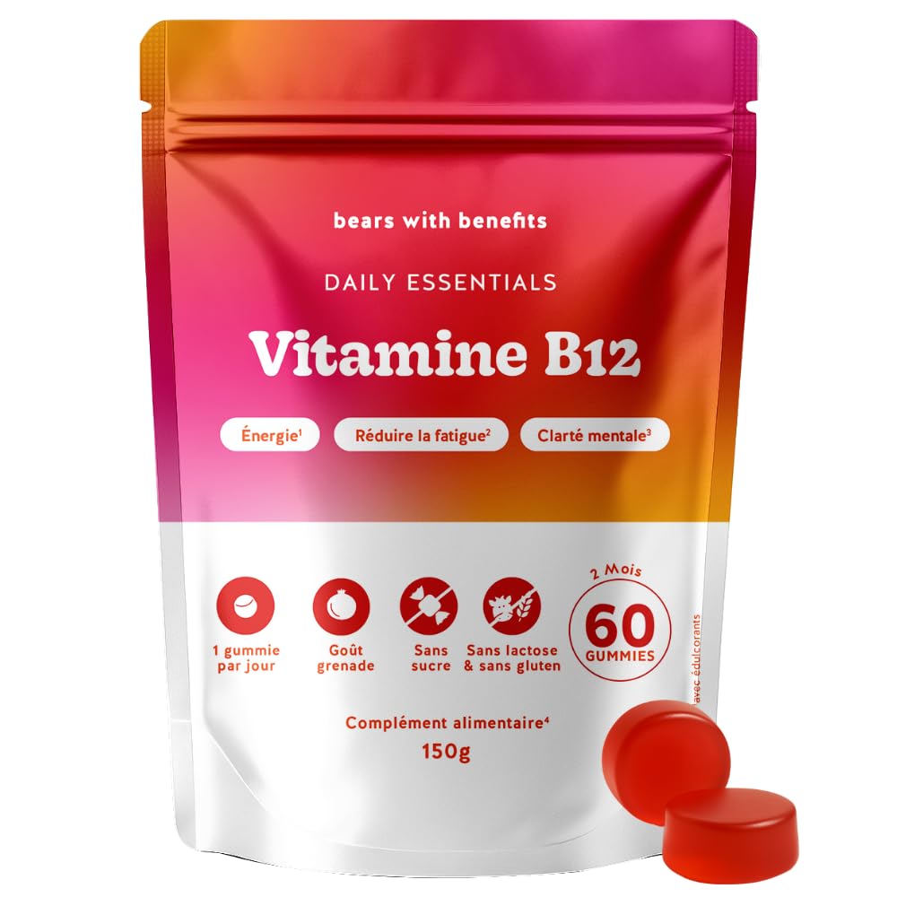 Gummies Vitamine B12 400 g Daily Essentials Contribue au M tabolisme Energ tique Normal R duction de la Fatigue 60 pi ces (2 mois) Vegan Sans Sucre Bears with Benefits NEW FORMAT