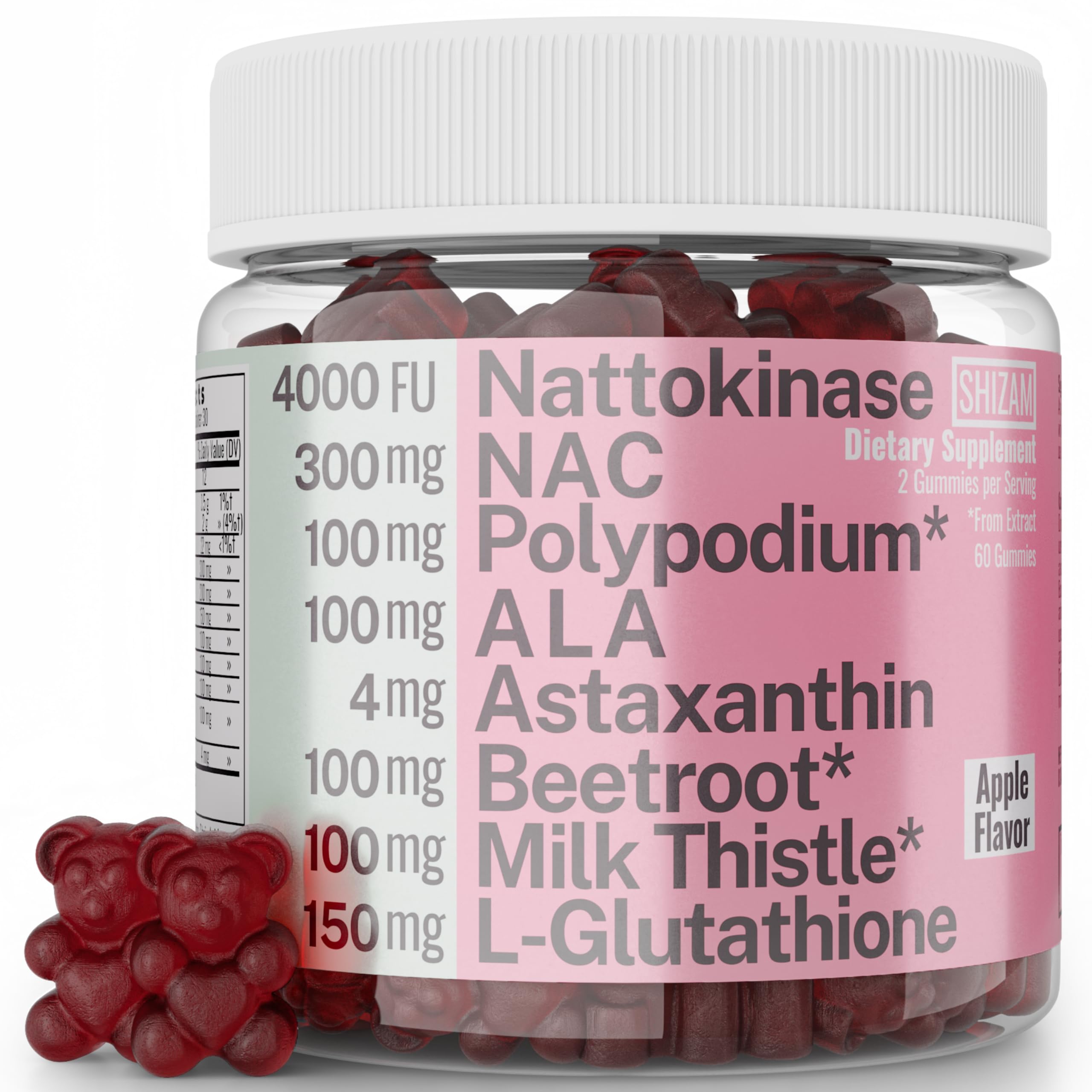 Gummy Supplement Nattokinase Polipodium Leucotomos Astaxanthin NAC N-Acetyl Cysteine Alpha Lipoic Acid L-Glutathione Nattokinase-Polipodium-Powder Beet Beetroot Chews Capsules Organic Liquid Extract