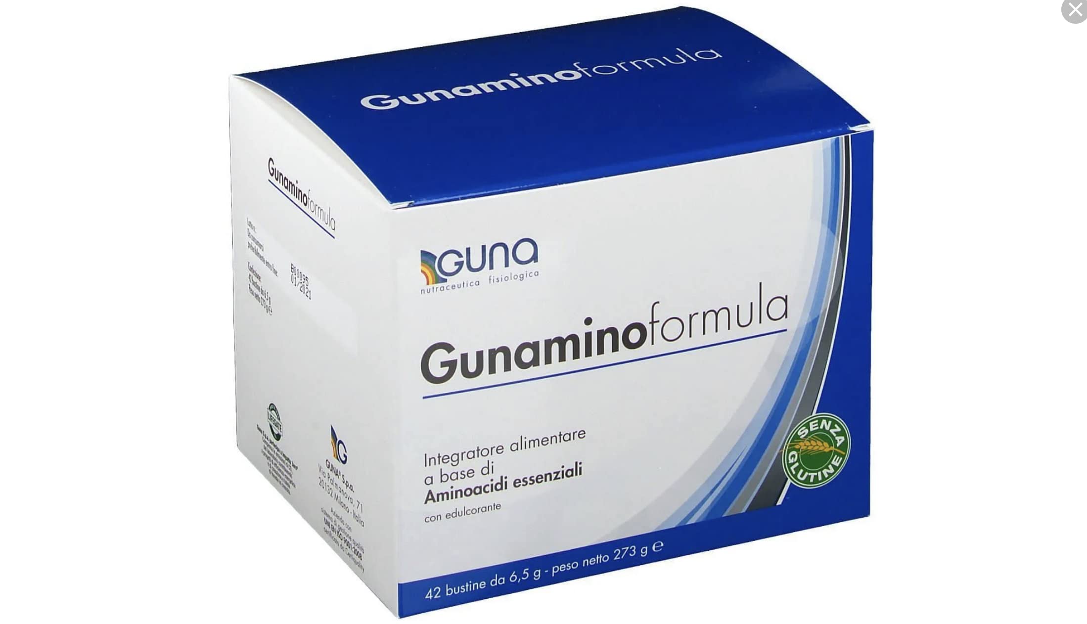 GunaminoFormula is a dietary supplement based on the 8 essential amino acids, present in a ratio specifically designed for humans. The amino acids in GunaminoFormula are obtained through plant extraction via fermentation, ultrapurification, and crystallization. The unique blend of GunaminoFormula amino acids lies in the precise proportions of the 8 essential amino acids, carefully calculated to ensure optimal absorption and utilization. Thanks to this characteristic, GunaminoFormula: is absorbed within minutes without digestive discomfort produces minimal nitrogenous waste and does not burden the kidneys and liver and provides a high protein value compared to most other foods. GunaminoFormula is an adjunct to help address essential amino acid deficiencies, nourishing lean muscle mass with minimal calorie intake. GunaminoFormula holds a privileged position in the field of nutritional supplementation, even in the presence of numerous pathologies, particularly chronic and degenerative conditions. Indications: GunaminoFormula is a dietary supplement of essential amino acids, indicated in cases of low intake or increased need for these nutrients. INGREDIENTS Essential amino acid blend (L-Leucine, L-Valine, L-Isoleucine, L-Lysine Hydrochloride, L-Fenylalanine, L-Treonine, L-Methionine, L-Triptophan), Maltodextrin, Acidity regulator: Citric acid, Flavorings, Emulsifier: Sucrose esters of fatty acids Sweetener: Sucralose.1 pack of 42 sachets.Guna Mini formule 42 sachets de 6,5 gDESCRIPTION DU PRODUIT DESCRIPTION DU PRODUIT La formule GunaminoFormula est le complément alimentaire à base des 8 acides aminés essentiels, présents dans un rapport comme quantité étudiée spécifiquement pour l'espèce humaine. Les acides aminés de Gunaminoformule sont obtenus par extraction de végétaux par processus de fermentation, ultrapurifiés et cristallisés. L'unicité du mélange acides aminés de Gunaminoformule consiste en un rapport proportionnel particulier entre les 8 acides aminés essentiels, étudié pour permettre leur absorption optimale et leur meilleure utilisation. Grâce à cette caractéristique, la formule Gunamino: elle est absorbée en quelques minutes sans engagement digestif produit uniquement un minimum de déchets azotés et ne surcharge pas les reins et le foie fournit une valeur protéine élevée par rapport à la plupart des autres aliments. GunaminoFormula est adjuvant pour aider à résoudre les carences nutritives en acides aminés essentiels, en nourrissant la masse maigre avec un apport calorique minimal. GunaminoFormula a une place privilégiée dans le domaine de la complétion nutritionnelle même en présence de nombreuses pathologies, en particulier de type chronique et dégénérescent. Indications : la formule GunaminoFormula est le complément alimentaire d'acides aminés essentiels, indiqué dans les cas de faible apport ou d'augmentation des besoins de ces nutriments. INGRÉDIENTS Mélange d'acides aminés essentiels (L-Leucine, L-Valine, L-Isoleucine, L-Lysine Chlorhydrate, L-Fénylalanine, L-Tréonine, L-Méthionine, L-Triptophane), Maltodextrine, Correcteur d'acidité : Acide citrique, Arômes, Emulsifiant : esters de saccharose d'acides gras Édulcorant : Sucralose Avec édulcorant -1 lot de 42 sachets.