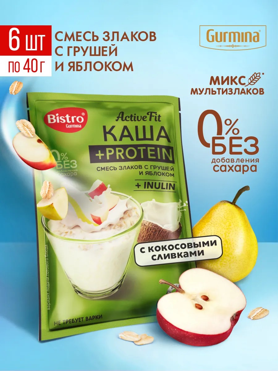 gurmina Каша быстрого приготовления + протеин, с грушей и яблоком, 6 ШТ по 40 г