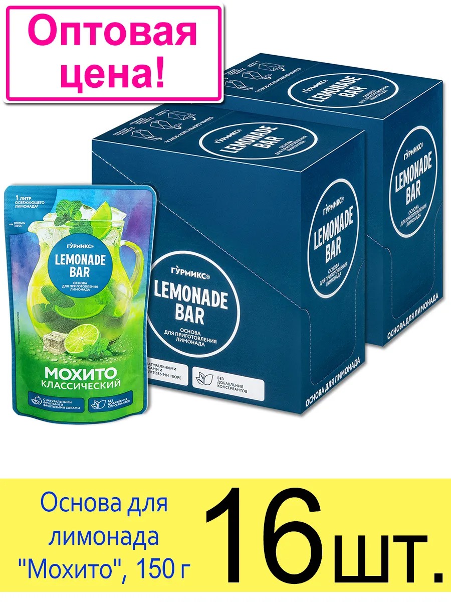 Lemonade Bar Gurmix "Classic Mojito" Lemonade Base, 150g. Gurmix lemonade base is a refreshing carbonated drink. You can prepare your favorite drinks quickly and easily.
