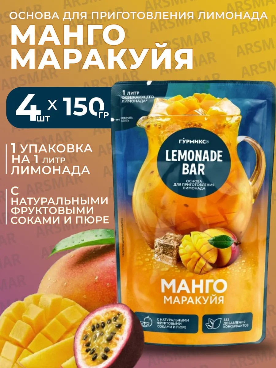 Гурмикс Основа для лимонада Манго Маракуйя 4шт*150г