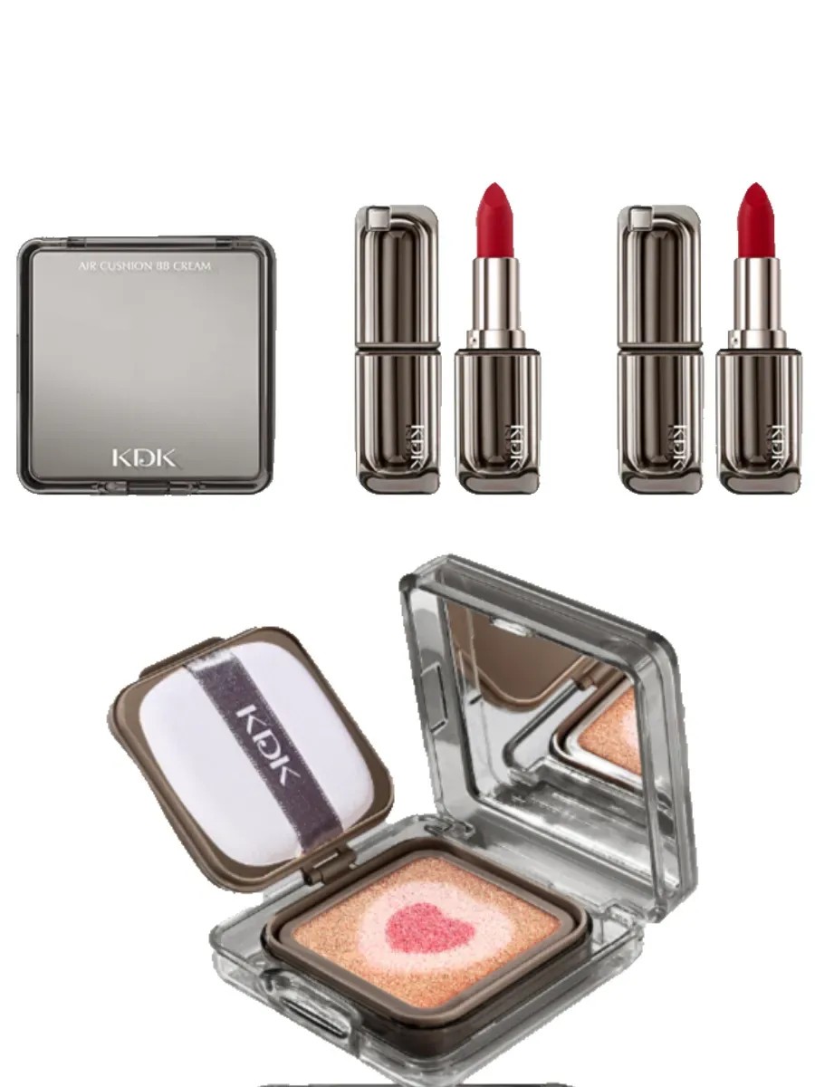 Take care of your skin and enhance its natural beauty with this set from KDK! This unique set combines an ivory BB cream cushion and two matte lipsticks (red and burgundy), designed to create a flawless look at any time of day. The cushion cream not only evens out skin tone but also reliably protects it from the harmful effects of the sun, preserving its youth and beauty, and is also self-adjusting to any skin tone. The unique formula of the cushion cream deeply moisturizes and strengthens the skin, leaving it soft, velvety, and radiant. The matte lipsticks will give your lips rich color and a velvety texture, keeping them hydrated all day long. This set will become your faithful companion in creating the perfect look, highlighting your individuality and natural beauty. Don't miss the opportunity to pamper yourself and your skin with this wonderful set!