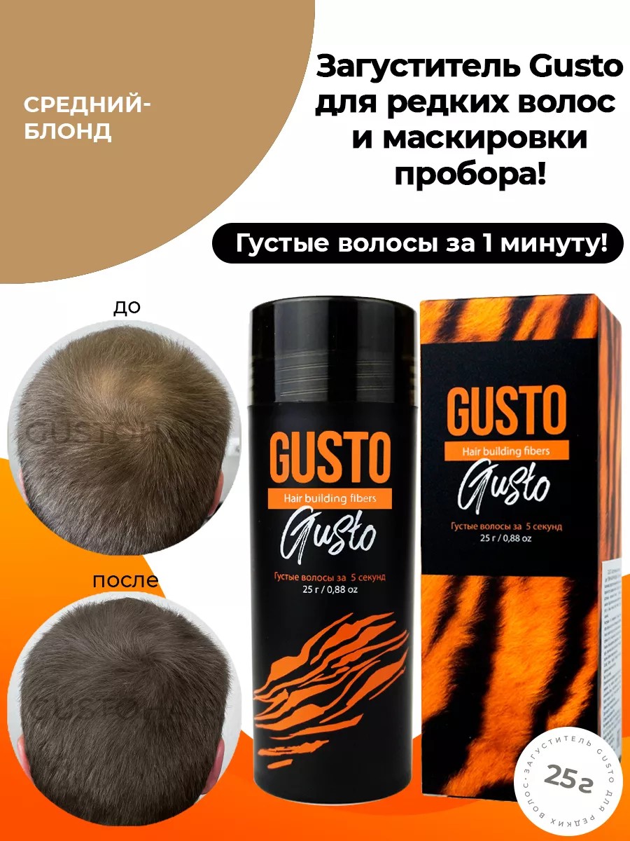 Color: Medium Blonde. This thickening powder contains organic natural fibers that coat the hair shaft using the principle of static electricity. Natural mineral pigments are used as colorants. It gives thinning hair a rich, natural color, thickness, and volume. The powder does not crumble and does not stain clothes or bedding. The convenient format is easy to take with you anywhere! The convenient packaging evenly distributes the desired shade over your hair, the powder does not crumble and does not stain clothes. The product is suitable for all hair types - gray or problematic, and also for coloring or in combination with other cosmetics. Ingredients: Gossypium Herbaceum fibers (cotton plant), mineral dyes. Directions for use: Open the bottle, remove the protective film, and sprinkle the product at a slight angle onto problem areas. Smooth lightly with your hand.