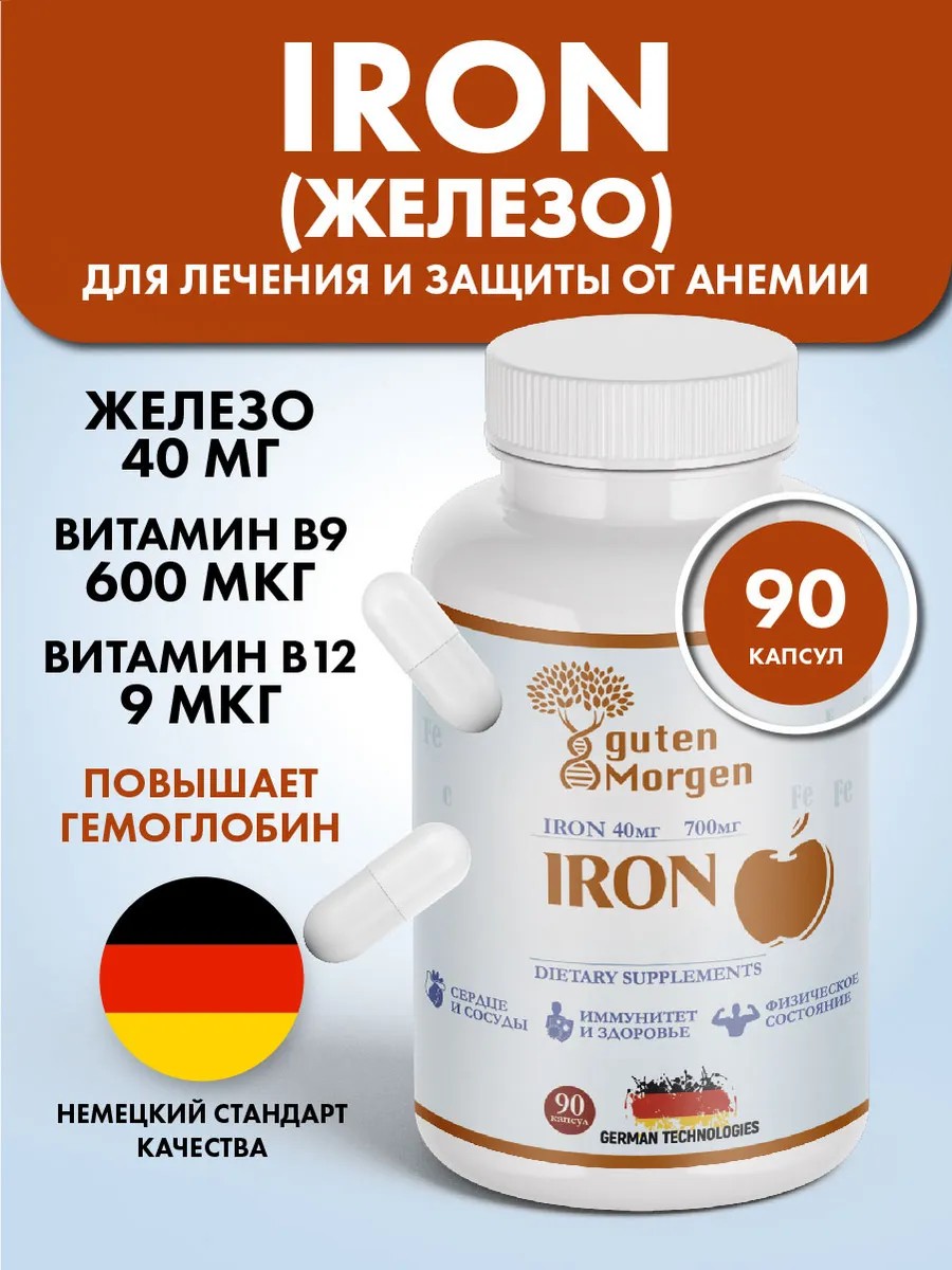 Железо 40мг, фумарат железа с витаминами B9, B12
