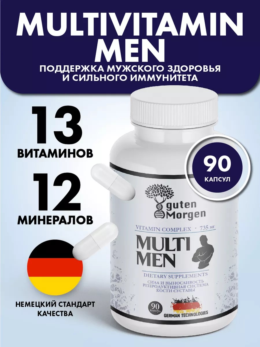Витамины для мужчин - это мультивитаминный комплекс, который специально разработан для поддержания мужского здоровья и повышения энергии и выносливости. Комплекс витаминов содержит 13 витаминов и 10 минералов в одной капсуле, которые помогают улучшить иммунную систему, поддерживать здоровье сердца и сосудов. Мультивитамины (поливитамины) способствуют повышению уровня тестостерона, улучшают кровообращение и общее состояние организма. Кроме того, витаминный комплекс помогает уменьшить усталость и повысить энергию, что особенно важно для мужчин, ведущих активный образ жизни и занимающихся спортом. Всего в упаковке 90 капсул, которых хватит на 3 месяца регулярного приема. Рекомендуется принимать курсом 1-2 месяца, потом сделать перерыв и снова вернуться к приему витаминов для иммунитета. Желатиновые капсулы массой 690мг+-10%. Вся продукция сертифицирована.