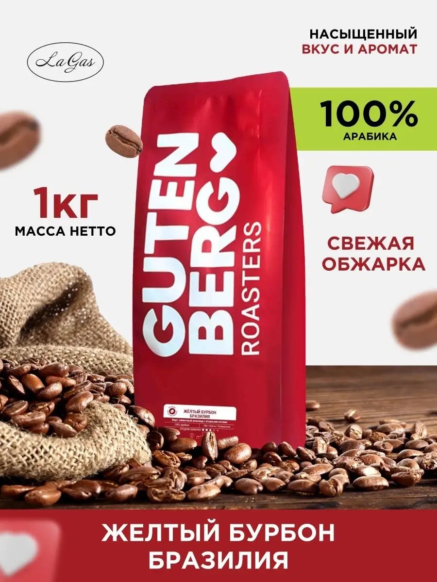 Gutenberg Кофе в зёрнах 1кг Бразилия Желтый Бурбон