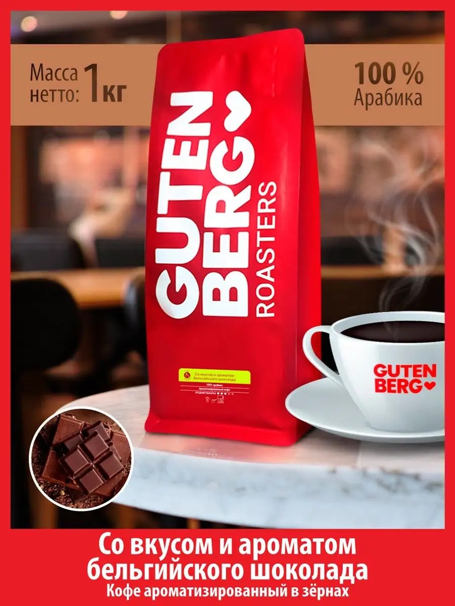 Gutenberg Кофе в зёрнах 1 кг вкус БЕЛЬГИЙСКИЙ ШОКОЛАД арома арабика