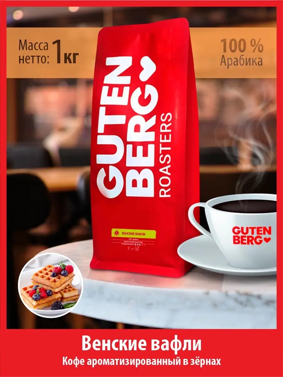 Gutenberg Кофе в зёрнах 1 кг вкус ВЕНСКИЕ ВАФЛИ арома 100% арабика