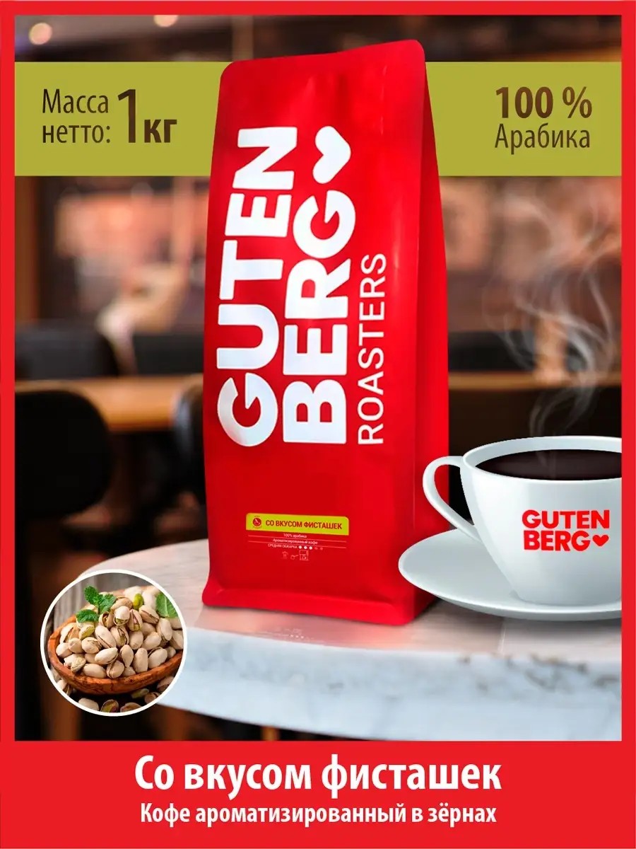 Gutenberg Кофе в зёрнах 1 кг СО ВКУСОМ ФИСТАШЕК ароматизированный