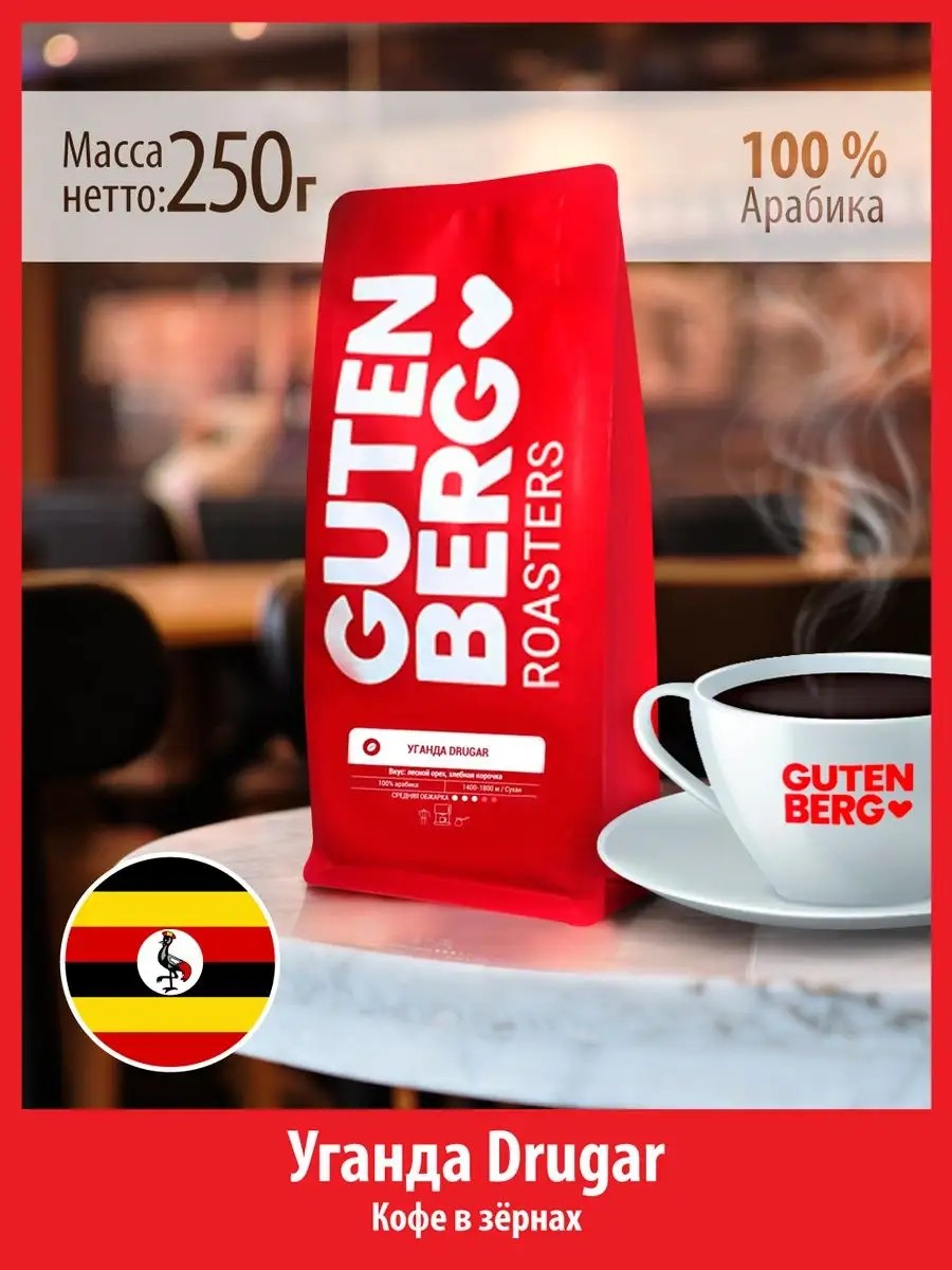 Gutenberg Кофе в зёрнах 250 г УГАНДА DRUGAR зерновой свежей обжарки