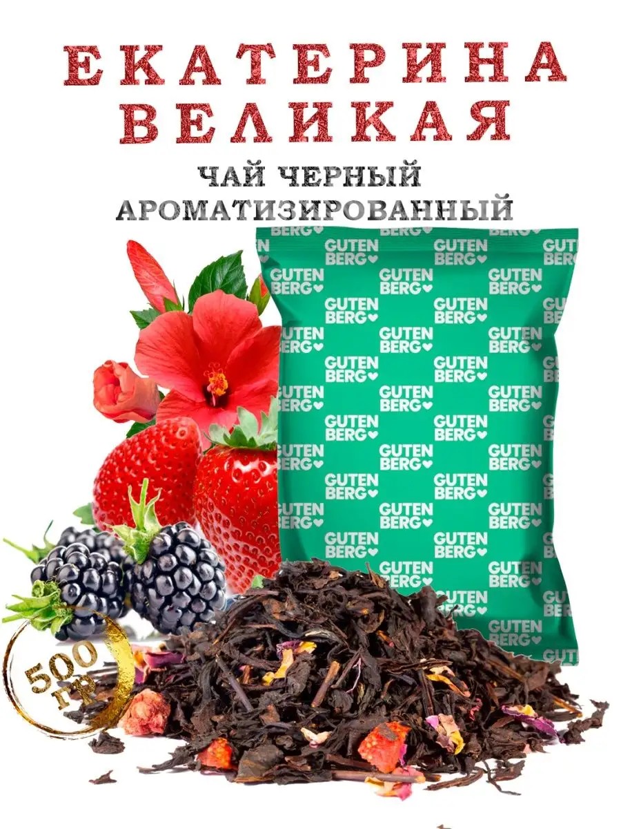 Catherine the Great black tea with the aroma of strawberries and blackberries, with subtle fruity and floral notes! Flavored loose-leaf black tea, Catherine the Great, will captivate you and lift your spirits. If you prefer tea brewed in a teapot, then Catherine the Great tea will undoubtedly delight you and provide moments of pleasure! Ingredients: black tea, hibiscus, strawberries and blackberries, rose petals, flavoring. Gutenberg.
