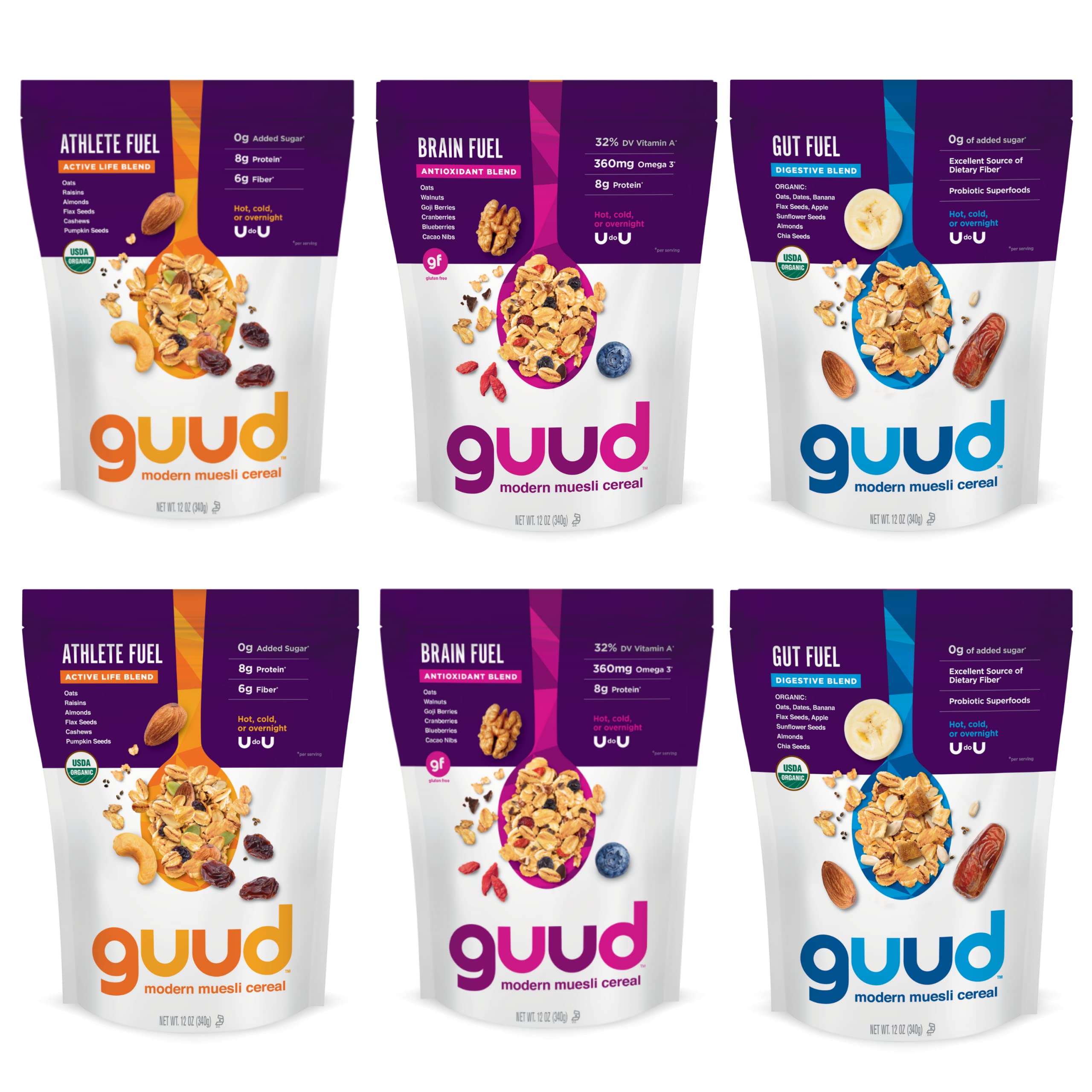 GUUD Fuel Pack Muesli Cereal Variety Pack, 12 Ounce (Pack of 6), Athlete Fuel, Brain Fuel, Gut Fuel, Vegan, Non-GMO Certified, Kosher