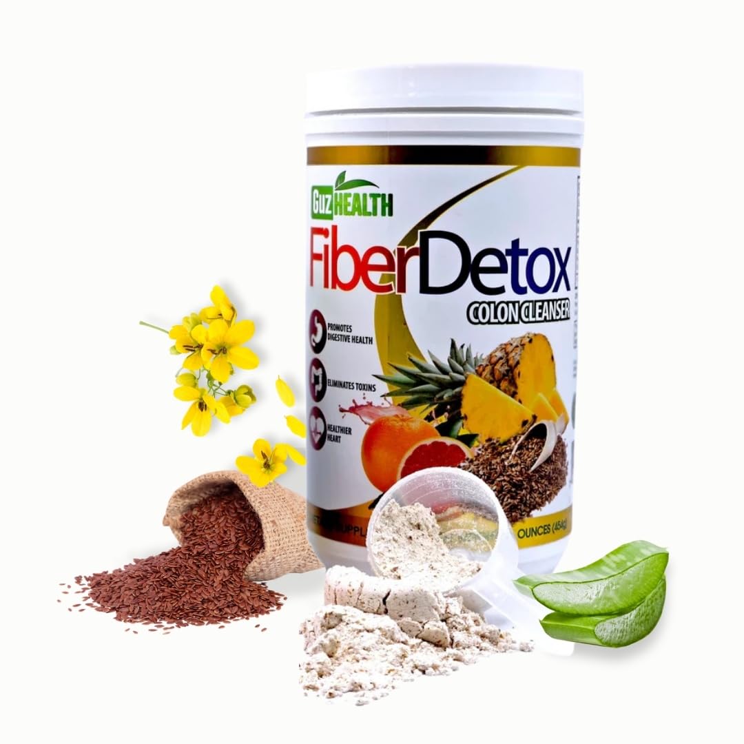 GuzHealth Colon Cleanser Fiber Detox Eliminate Toxins Constipation Relief Improve Digestion - Fiber Powder 30 Day Supply Includes Measuring Scoop