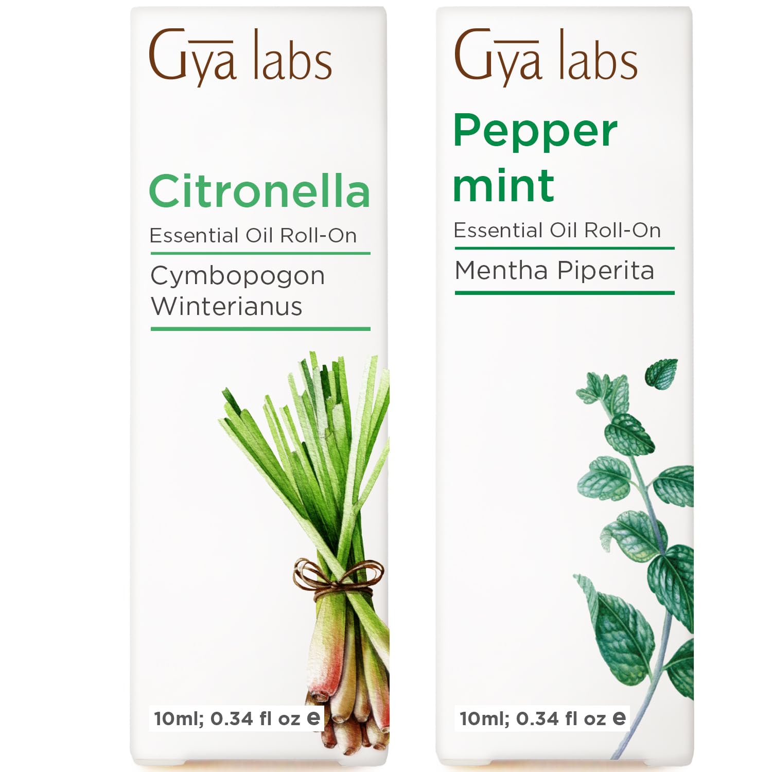 Gya Labs Citronella & Peppermint Roll On Set - Essential Oils Aromatherapy Roll On with Essential Oil Set - 2x0.34 fl oz