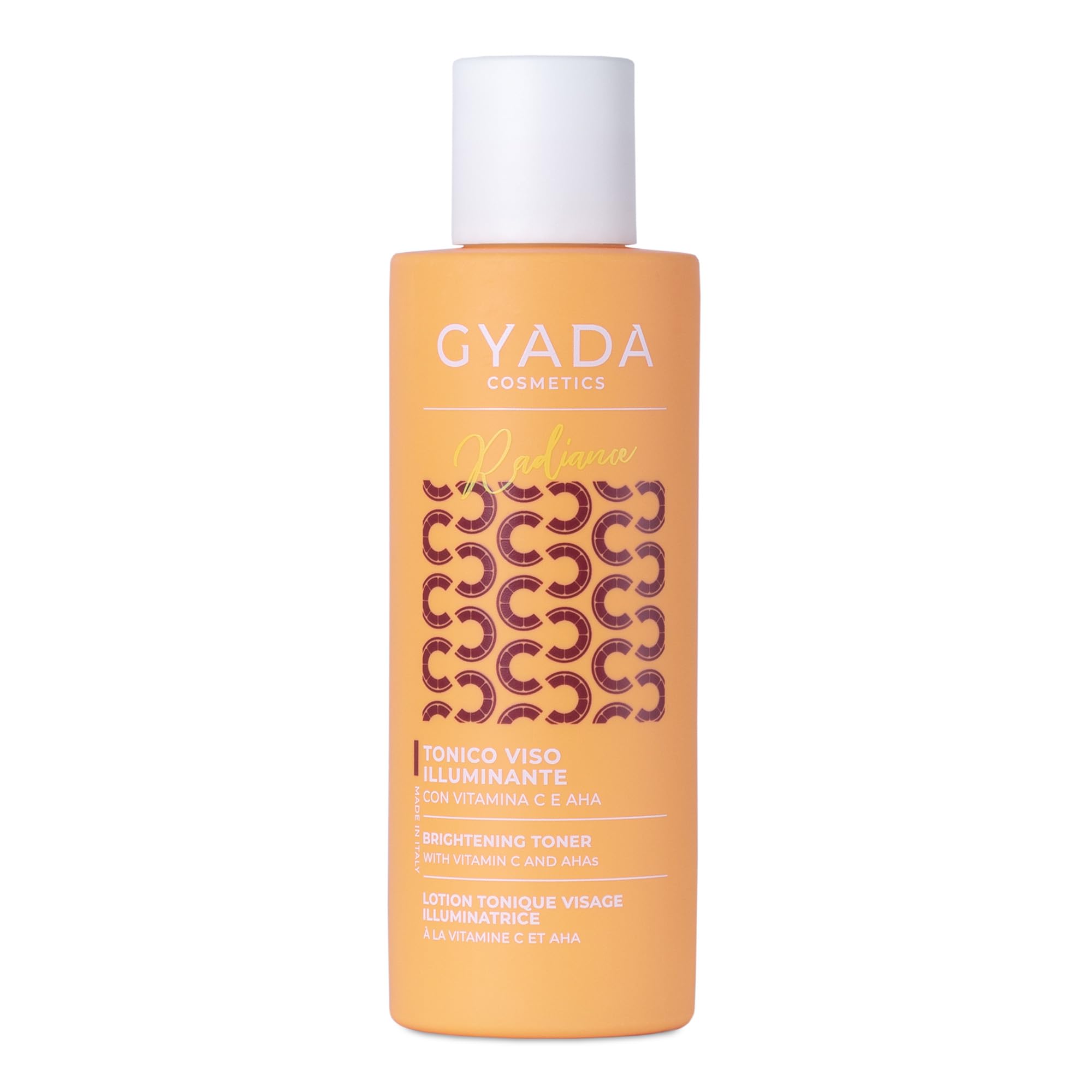 Radiance Face Toner, an illuminating facial toner, gives a brightening effect to the skin and feels fresh and light. It has an antioxidant effect and protects against oxidative stress. It brightens and evens skin tone, helping to treat age-related hyperpigmentation, skin discoloration, expression lines, and excess sebum. It stimulates the production of collagen and elastin, leaving skin toned, elastic, and radiant. Fresh and light, Radiance Face Toner helps tone and refresh the skin, stimulate cell renewal, treat imperfections and enlarged pores, giving your face a smooth and luminous appearance. Contains a blend of active ingredients including stabilized vitamin C, mandelic acid, lactobionic acid, and ferulic acid with exfoliating, brightening, and purifying properties urea, which helps maintain skin hydration and plant extracts of goji berries, pomegranate, and Ursine grape, which provide antioxidant benefits. Further enriched with an illuminating complex derived from mullein flowers, which brightens the complexion and protects it from oxidative stress. Suitable for all skin types. Ideal for the "Radiance Vitamin C" treatment and also for daily use. This product is specially formulated to brighten the complexion, reduce blemishes, and even out skin tone. It stimulates cell renewal, reduces imperfections, and gives the skin a healthy, radiant appearance. For women, men, children, boys, girls, and unisex skin. Formulated without alcohol, BHA, BHT, colorants, EDTA, PEG, parabens, petrolatum, SLES, SLS, silicones, or nickel. Vegan. Directions for use: Pat onto face morning and evening after cleansing with Radiance Cleansing Face Gel. INGREDIENTS Ingredients: Aqua, Glycerin, Propanediol, Punica granatum extract, Lycium barbarum fruit extract ( ), Arctostaphylos uva-ursi leaf extract ( ), Caesalpinia spinosa gum, Hydrolyzed caesalpinia spinosa gum, Hydrolyzed verbascum thapsus flower, Sodium ascorbic acid, Bile phosphate, Iron. Ulic acid, Lactobionic acid, Mandelic acid, Benzyl alcohol, Parfum (Fragrance), Coco-glucoside, Tetrasodium glutamate diaceate, Glyceryl oleate, Ethylhexylglycerin, Citric acid, Limonene, Linalool, Alpha-isomethyl ionone, Sodium benzoate, Citral, Potassium sorbate. ( ) Ingredients from organic farming DIRECTIONS FOR USE Dab morning and evening onto a face previously cleansed with Radiance Cleansing Face Gel SAFETY WARNING May cause irritation upon contact with eyes or skin. Do not ingest. Keep out of reach of children. See moreGYADA COSMETICS: High-quality cosmetics created using exclusively natural formulations based on plant and organic extracts. How to use: Pat onto the face morning and evening after cleansing with the facial cleansing gel. Ingredients: Contains a complex of active ingredients including stabilized vitamin C, mandelic acid, lactobionic acid, ferolic acid, urea, and plant extracts of goji berries, pomegranate, and Ursine grape. Properties: Fresh and light, helps tone and refresh the skin, stimulates cell renewal, treats blemishes and enlarged pores, with an antioxidant effect, while protecting against oxidative stress. Facial toner: Brightens and evens skin tone, helping to treat age-related hyperpigmentation, skin discoloration, expression lines, and excess sebum.GYADA COSMETICS, Tonique visage éclairant, antioxydant, tonifie la peau, stimule le remplacement cellulaire, traite les imperfections et pores dilués, à base de vitamine C, 200 mlDESCRIPTION DU PRODUIT DESCRIPTION DU PRODUIT Radiance Face Toner, tonique visage illuminant donne un effet illuminant à la peau du visage et est frais et léger. Il joue une action antioxydante et protège contre le stress oxydatif. Illumine et uniformise le teint, aidant à traiter les hyperpigmentations liées au vieillissement, les dyschromes cutanées, les signes d'expression, l'excès de sébum. Stimule la production de collagène et d'élastine, rendant la peau tonique, élastique et lumineuse. Frais et léger, le Toner Radiance Face aide à tonifier et rafraîchir la peau, stimuler le remplacement cellulaire, traiter les imperfections et les pores dilatés, donnant à votre visage un aspect uniforme et lumineux. Contient un mélange d'actifs à base de vitamine C stabilisée, d'acide mandélique, d'acide lactobionique et d'acide férulique aux propriétés exfoliantes, éclaircissantes et purifiantes, d'urée qui aide à maintenir l'hydratation cutanée et d'extraits végétaux de baies de Goji, grenade et raisin d'Ursine à l'action antioxydante. Enrichi en outre avec un complexe illuminant issu des fleurs de molène qui enrichit le visage de nouvelle lumière, le protégeant du stress oxydatif. Convient à tous les types de peau. Idéal pour le traitement « Radiance Vitamin C » et aussi pour un usage quotidien. Produit spécialement formulé pour éclairer le teint, réduire les taches et uniformiser le teint. Stimule le renouvellement cellulaire, réduit les imperfections et donne à la peau un aspect sain et radieux. Femme, Homme, Enfant, Garçon, Fille, Mixte. Formulé sans alcool, BHA, BHT, Colourants, EDTA, PEG, Parabens, Petrolatum, SLES, SLS, Silicones, Nickel. Vegan Mode d'utilisation : tamponner matin et soir sur le visage préalablement nettoyé avec le gel Radiance Cleansing Face INGRÉDIENTS Ingrédients : Aqua, Glycerin, Propanediol, Punica granatum extract, Lycium barbarum fruit extract ( ), Arctostaphylos uva-ursi leaf extract ( ), Caesalpinia spinosa gum, Hydrolyzed caesalpinia spinosa gum, Hydrolyzed verbascum thapsus flower, Sodium ascor. Byl phosphate, Fer. Ulic acid, Lactobionic acid, Mandelic acid, Benzyl alcohol, Parfum, Coco-glucoside, Tetrasodium glutamate diacéate, Glyceryl oleate, Ethylhexylglycerin, Citric acid, Limonène, Linalool, Alpha-isomethyl ionone, Sodium benzoate, Citral, Potassium sorbate. ( ) Ingrédients issus de l'agriculture biologique MODE D'EMPLOI Tamponnez matin et soir sur le visage préalablement nettoyé avec Radiance Cleansing Face Gel AVERTISSEMENT D