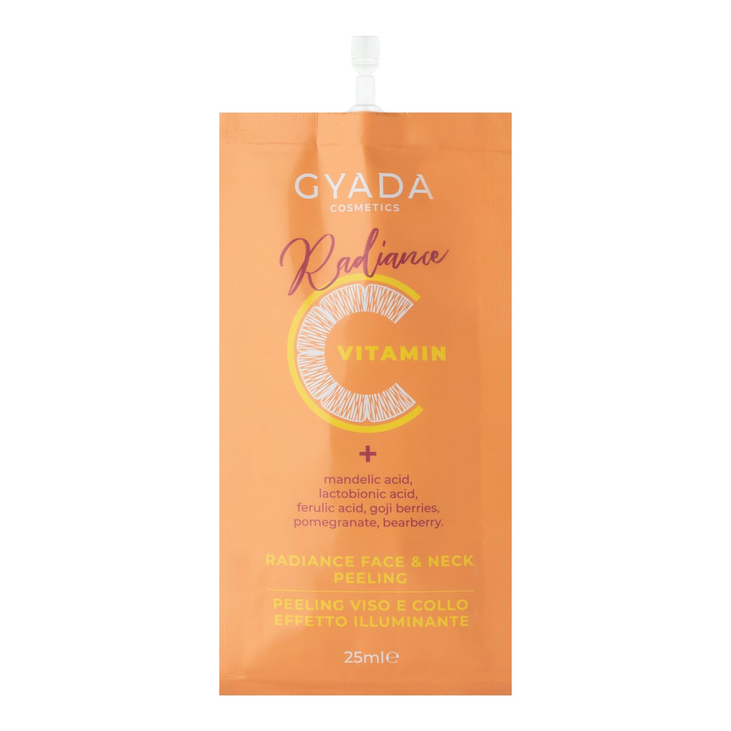 Radiance Face Neck Peeling, peeling face and neck stimulate cell turnover and lightens dark spots lightens and brightens the complexion, helps treat hyperpigmentations, skin dysromia, mimic signs and excess sebum. Stimulates the production of collagen and elastin, makes the skin tight, elastic and radiant. Radiance Face Neck Peeling is a facial and neck peeling with ingredients to stimulate cell metabolism, lightens dark spots, counteracts superficial wrinkles and gives facial and neck skin a compact and radiant appearance. Contains a complex of active ingredients based on stabilized vitamin C, mandelic acid, lattobionic acid and heel acid with peeling properties, whitening and cleaning properties. In synergy with hibiscus blossom extract, rich in pyuvin acid, which helps to promote the detoxification of dead cells and smooth the skin. Enriched with plant extracts of goji berries, pomegranate and ursina grapes with antioxidant effect and urine with moisturizing effect. Ideal for the treatment "Radiance Vitamin C" and also all year round. Specially formulated to lighten the complexion, reduce blemishes and compensate for skin tone. Promotes cell renewal, reduces imperfections and gives the skin a healthy and radiant appearance. For women, men, children, boys, girls, unisex. Formulated without alcohol, BHA, BHT, Colourants, EDTA, PEG, parabens, petrolatum, SLES, SLS, silicones, nickel. vegan application: Apply to the cleansed and dry area for several consecutive days, leave on for 5-10 minutes, rinse and apply your Radiance Face Cream. Carry out treatment 1 2 times a month. Warnings: Avoid direct contact with eyes and keep it away from children.GYADA COSMETICS: High-quality cosmetics, made by using only natural formulas, based on vegetable and biological extracts. Use: Apply to the cleansed and dry area for several consecutive days, leave for 5-10 minutes, rinse. Carry out treatment 1 2 times a month. Ingredients: contains vitamin C, mandelic acid, lactobionic acid, ferulic acid, pomegranate, goji berries, ursina. Properties: Helps treat over-pigmentation, skin dyscromia, expression marks, excess sebum. Promotes the production of collagen and elastin. Peeling for face and neck: Stimulates cell turnover and lightens dark spots, counteracts superficial wrinkles and gives the skin of the face and neck a compact and radiant appearance.GYADA COSMETICS, Radiance Face Neck Peeling, peeling voor gezicht en hals, stimuleert het reserveonderdeel voor mobiele telefoons, contrast donkere vlekken, ouderdomstekens en expressieverschijnselen, gebaseerd op vitamine C, 25 ml Radiance Face Neck Peeling, peeling gezicht en hals stimuleren de celwisseling en verlicht donkere vlekken op verlicht en maakt de teint, helpt bij de behandeling van hyperpigmentaties, huiddyshromie, mimica-tekenen en overtollig talg. Stimuleert de productie van collageen en elastine, maakt de huid strak, elastisch en stralend. Radiance Face Neck Peeling is een gezichts- en halspeeling met ingrediënten ter stimulatie van de celstofwisseling, verlicht donkere vlekken op, werkt oppervlakkige rimpels tegen en geeft gezichts- en nekhuid een compact en stralend uiterlijk. Bevat een complex van werkzame stoffen op basis van gestabiliseerd vitamine C, amandelzuur, lattobionzuur en hielzuur met peeling-eigenschappen, bleek- en reinigingseigenschappen. In synergie met het extract van hibiscusbloesem, rijk aan pyuvinzuur, dat helpt om de ontgifting van dode cellen te bevorderen en de huid glad te maken. Verrijkt met plantenextracten van goji-bessen, granaatappel en ursina-druiven met antioxidatieve werking en urinea met hydraterende werking. Ideaal voor de behandeling "Radiance Vitamine C" en ook het hele jaar door. Speciaal geformuleerd om de teint lichter te maken, vlekken te verminderen en de teint te compenseren. Bevordert de celvernieuwing, vermindert onvolkomenheden en geeft de huid een gezond en stralend uiterlijk. Voor dames, heren, kinderen, jongens, meisjes, uniseks. Geformuleerd zonder alcohol, BHA, BHT, Colourants, EDTA, PEG, parabenen, petrolatum, SLES, SLS, siliconen, nikkel. vegan toepassing: Enkele opeenvolgende dagen op de gereinigde en droge plaats aanbrengen, 5-10 minuten laten inwerken, afspoelen en uw Radiance Face Cream aanbrengen. Behandeling 1 2 keer per maand uitvoeren. Waarschuwingen: Vermijd direct contact met de ogen en houd het uit de buurt van kinderen.GYADA COSMETICS: Hoogwaardige cosmetica, gemaakt door het gebruik van uitsluitend natuurlijke formules, op basis van plantaardige en biologische extracten. Gebruik: Breng gedurende enkele opeenvolgende dagen op de gereinigde en droge plaats aan, laat 5-10 minuten inwerken, afspoelen. Behandeling 1 2 keer per maand uitvoeren. Ingrediënten: bevat vitamine C, amandelzuur, lactobionisch zuur, ferulenzuur, granaatappel, goji-bessen, ursina. Eigenschappen: Helpt bij de behandeling van overpigmentatie, huiddyscromia, expressieteken, overtollig talg. Bevordert de productie van collageen en elastine. Peeling voor gezicht en hals: Stimuleert de celwisseling en verlicht donkere vlekken, werkt oppervlakkige rimpels tegen en geeft de huid van gezicht en hals een compact en stralend uiterlijk.