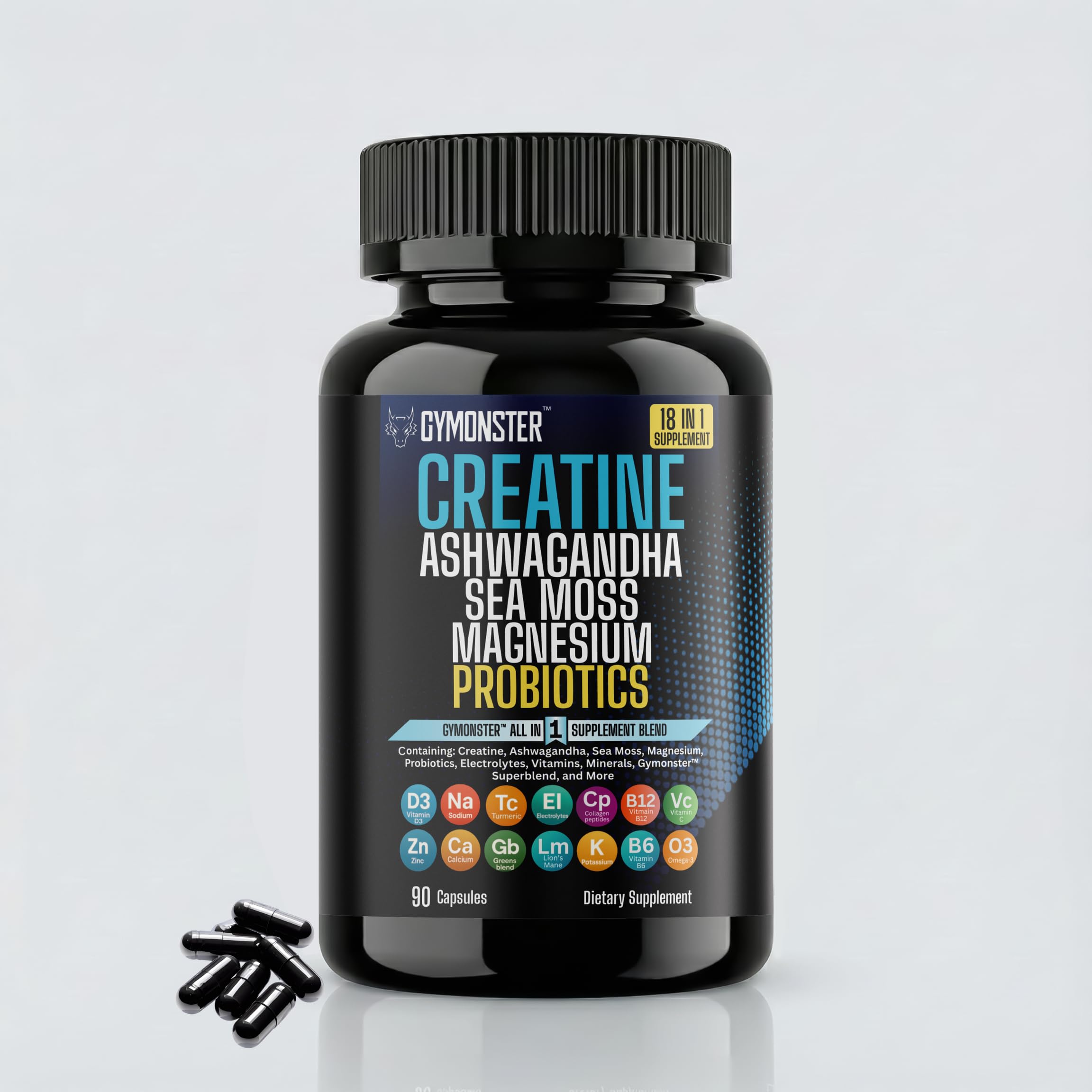 Gymonster Creatine All in One Supplement Capsules Ashwagandha Sea Moss Magnesium Probiotics