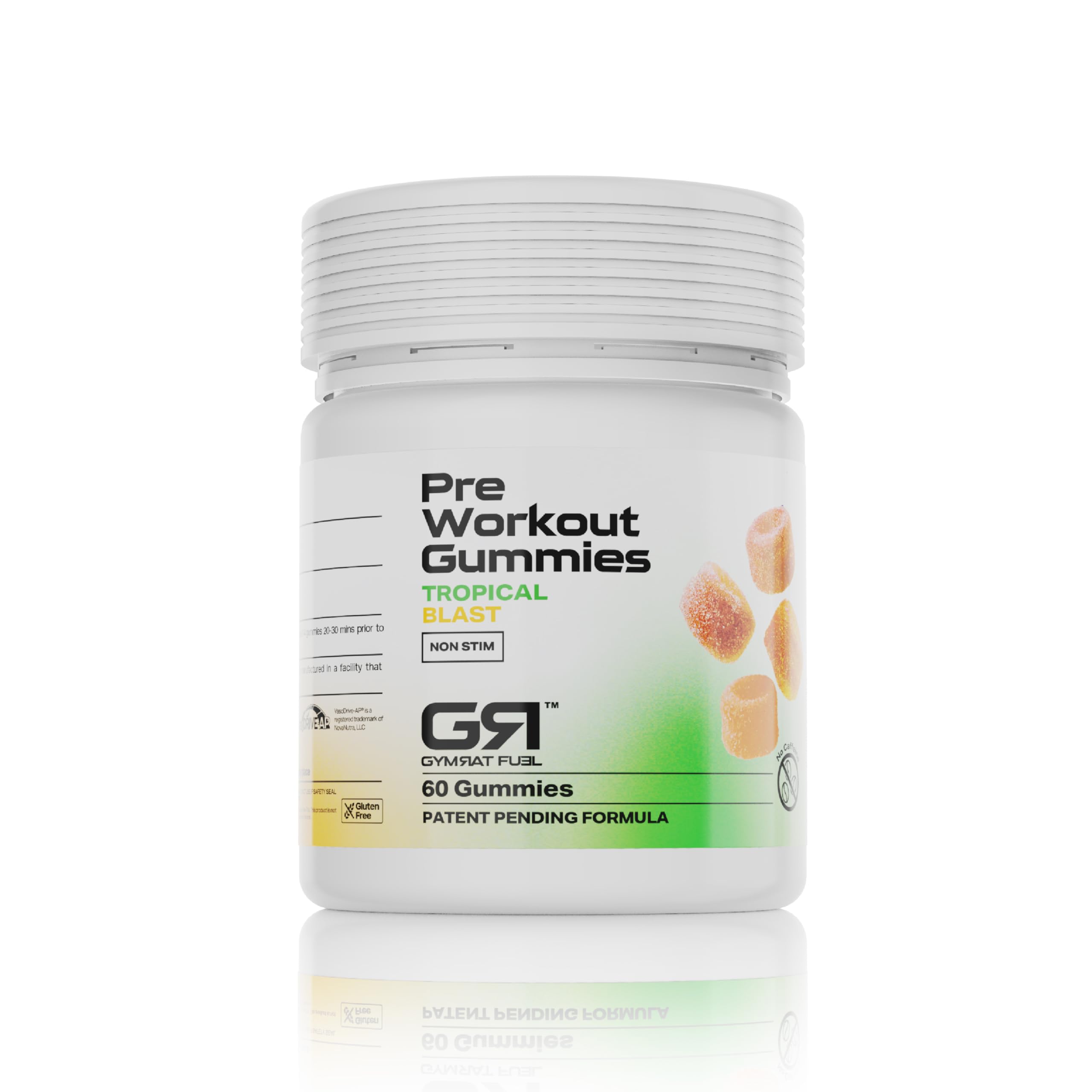 Gymrat Fuel Pre Workout Gummies Tropical Blast Long Lasting No Crash Vegan Energy & Focus Boost USA Made & GMP Certified with VasoDrive-AP and Vitamin B 12 for Men & Women (60 Count)