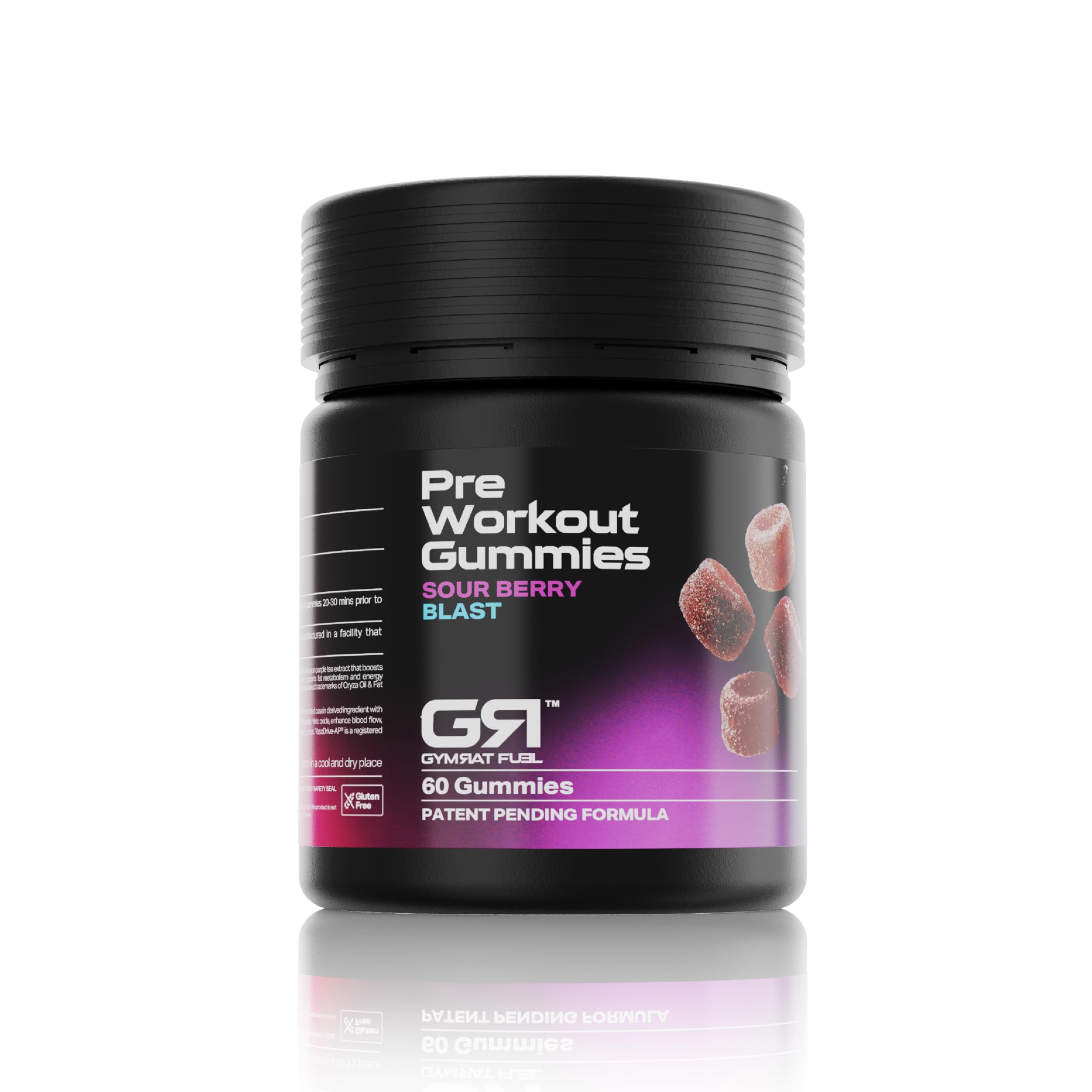 GymRat Pre Workout Gummies Sour Berry Flavor Intense Energy & Focus First with Purple Force Vasodrive-AP Guarana Pea & L-Theanine USA Made & GMP Certified (60 Ct)