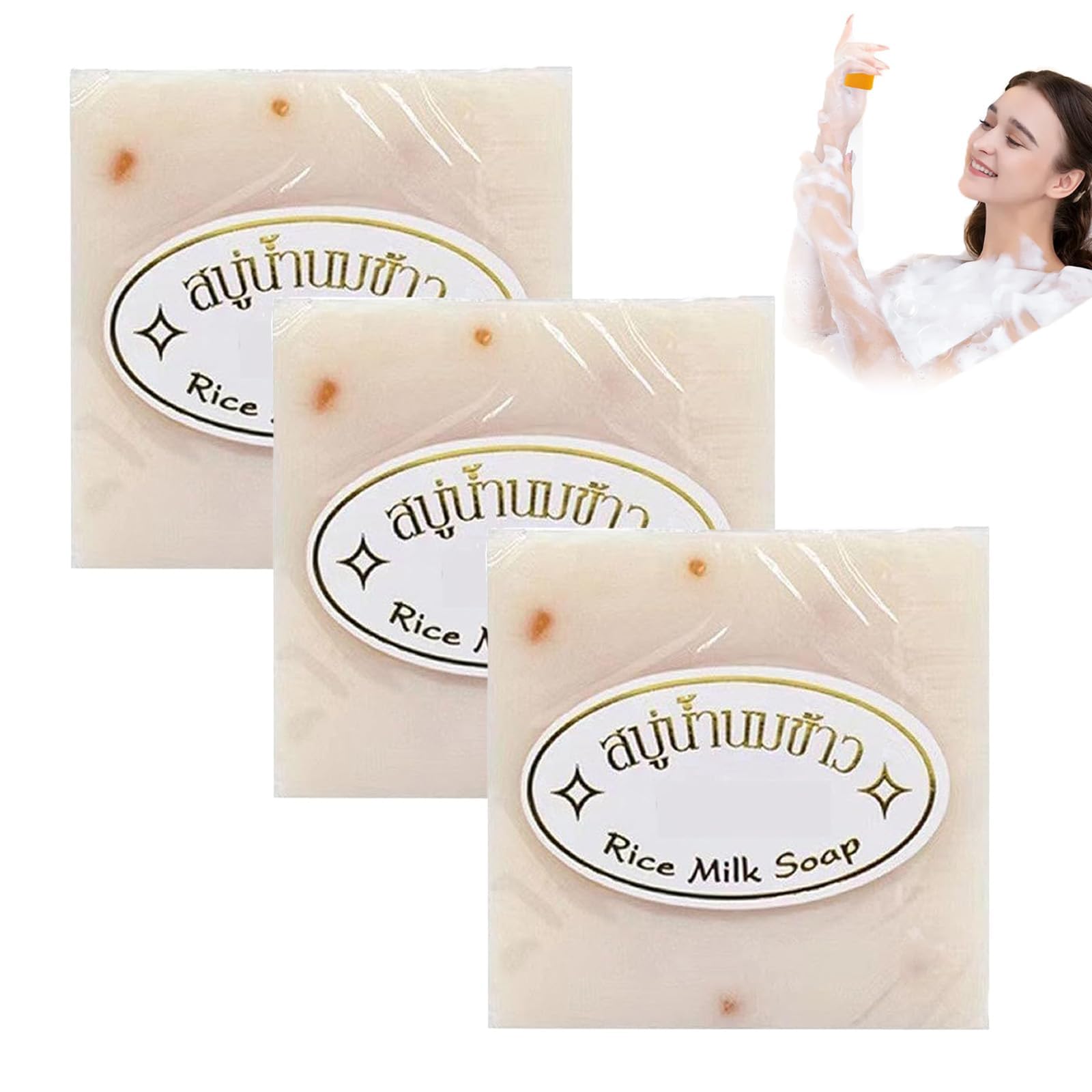 GYORI 3 Pcs Jabon Aclarante De Arroz Thai Rice Soap Original Thai Handmade Soap Rice Milk Soap Jabon De Arroz Para Aclarar La Piel Thailand Whitening Soap for Face and Body
