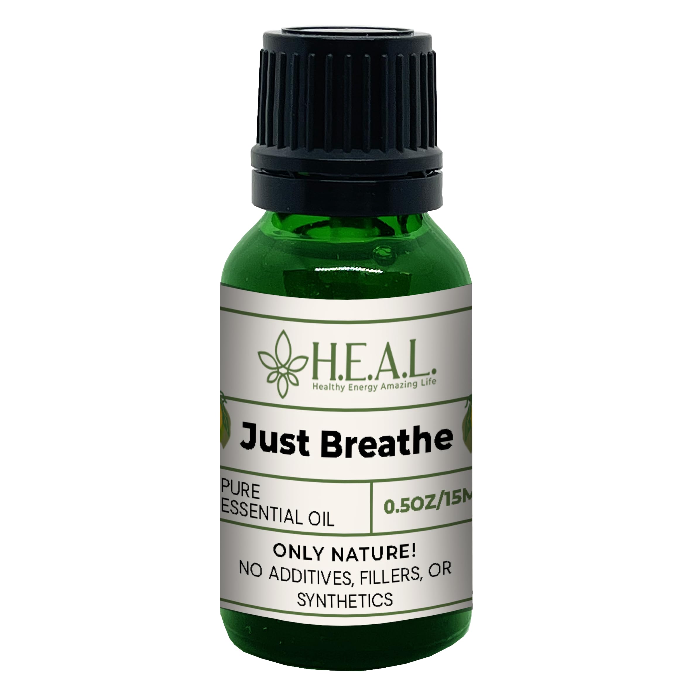 H.E.A.L. Just Breathe Essential Oil Blend 100% Pure Aromatherapy Oil with Eucalyptus Peppermint Tea Tree & Citrus for Diffusers & DIY Blends 0.5oz