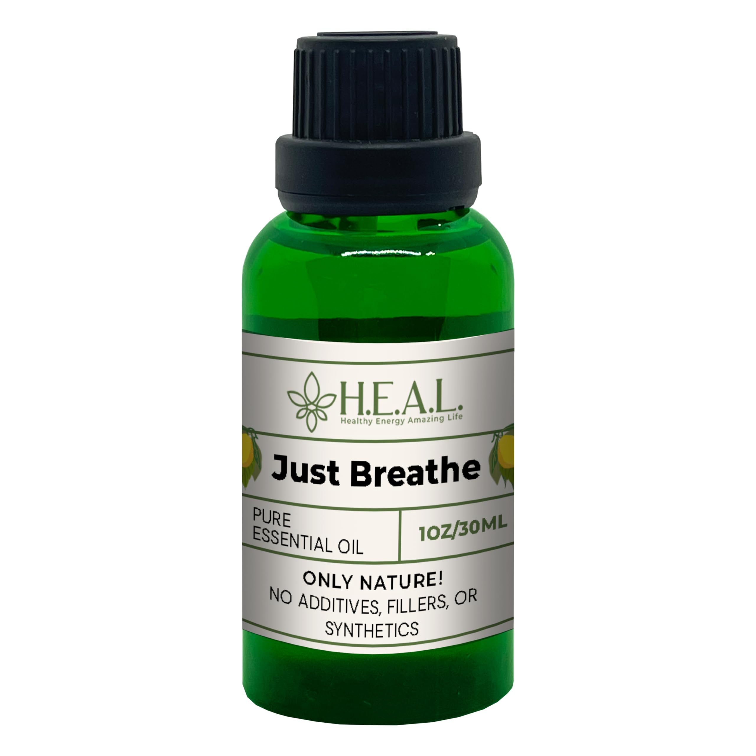 H.E.A.L. Just Breathe Essential Oil Blend 100% Pure Aromatherapy Oil with Eucalyptus Peppermint Tea Tree & Citrus for Diffusers & DIY Blends 1oz