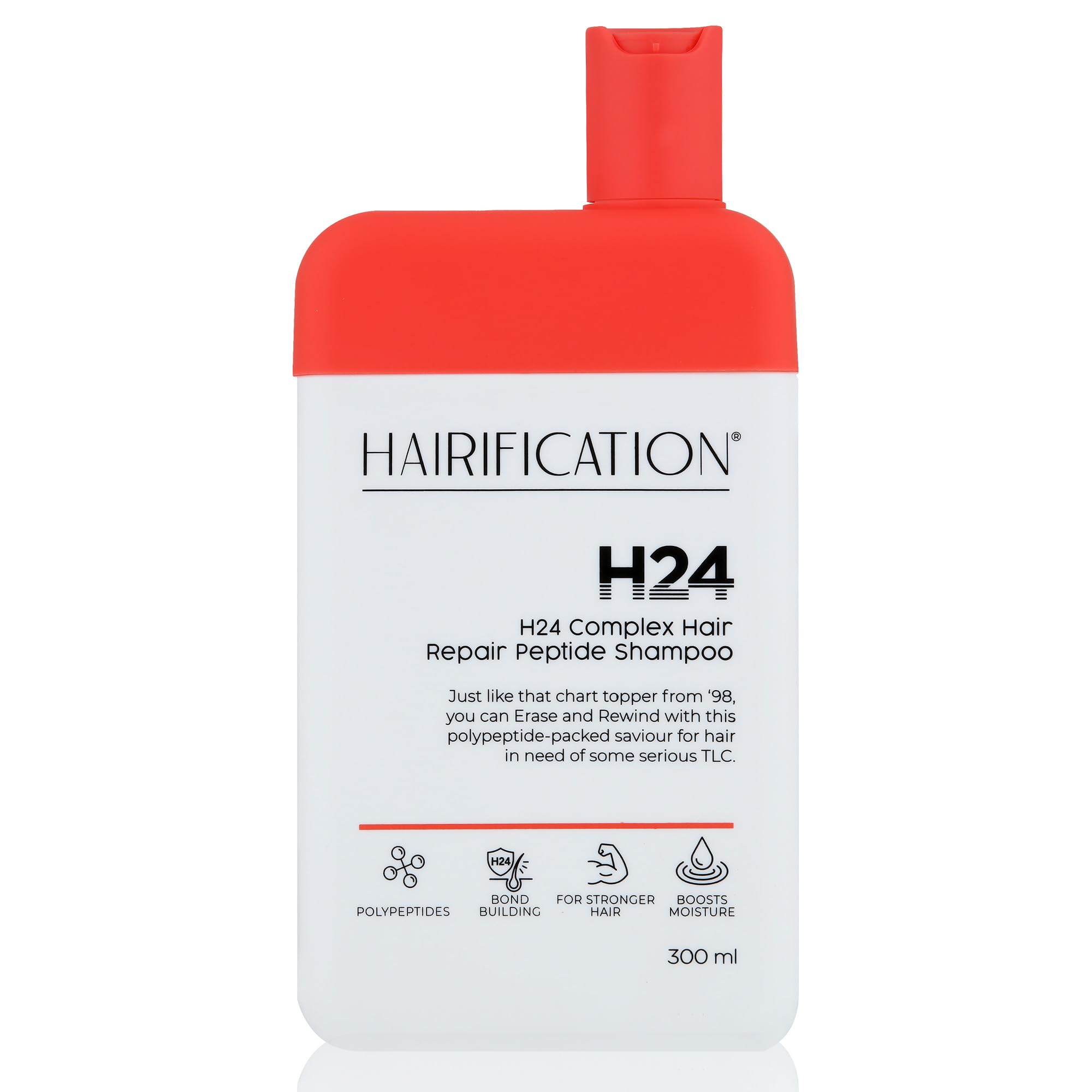 Directions – Prepare for Repair: Wash twice with H24 Complex Peptide Repair Shampoo to deeply cleanse the scalp and prepare strands for better absorption. Rinse thoroughly, then apply H24 Complex Leave-In Repair Mask as the next step in your hair care routine. Daily Recovery Ritual: A daily repair shampoo for women that promotes shine and softness without weighing hair down—ideal for over-styled, color-treated, and tired hair. Hydration Strength in One Step: Gently cleanses while helping to smooth rough texture, soften split ends, and refresh dry hair. Bond Support: Enriched with polypeptides, this fortifying shampoo works deep within the hair fiber to preserve bond integrity and strength. Bond Repair Starts Here: This peptide-rich repair shampoo for women targets weakened strands to restore inner strength, softness, and bounce from root to tip.Mode d'emploi – Préparez la réparation : Lavez deux fois avec le Shampooing Peptide Réparateur H24 Complex pour nettoyer en profondeur le cuir chevelu et préparer les mèches à une meilleure absorption. Rincez abondamment puis appliquez le Masque Réparateur Sans Rinçage H24 Complex comme étape suivante de votre soin capillaire. Rituel quotidien de récupération : Shampooing réparateur quotidien pour femmes qui favorise la brillance et la douceur sans alourdir — idéal pour les cheveux sur-stylisés, colorés et fatigués. Hydratation Force en un seul geste : Nettoie délicatement tout en aidant à lisser la texture rugueuse, adoucir les pointes cassantes et rafraîchir les cheveux secs. Soutien des liens : Enrichi en polypeptides, ce shampooing fortifiant agit en profondeur dans la fibre capillaire pour préserver l'intégrité et la résistance des liens. La réparation des liens commence ici : Ce shampooing réparateur riche en peptides pour femmes cible les mèches affaiblies pour restaurer la force intérieure, la douceur et le rebond de la racine aux pointes.H24 Complex Peptide Shampooing pour Femmes, Formule Soin des Liens avec Ingrédients Hydratants pour des Cheveux Visiblement Plus Forts et Revitalisés – 300ml