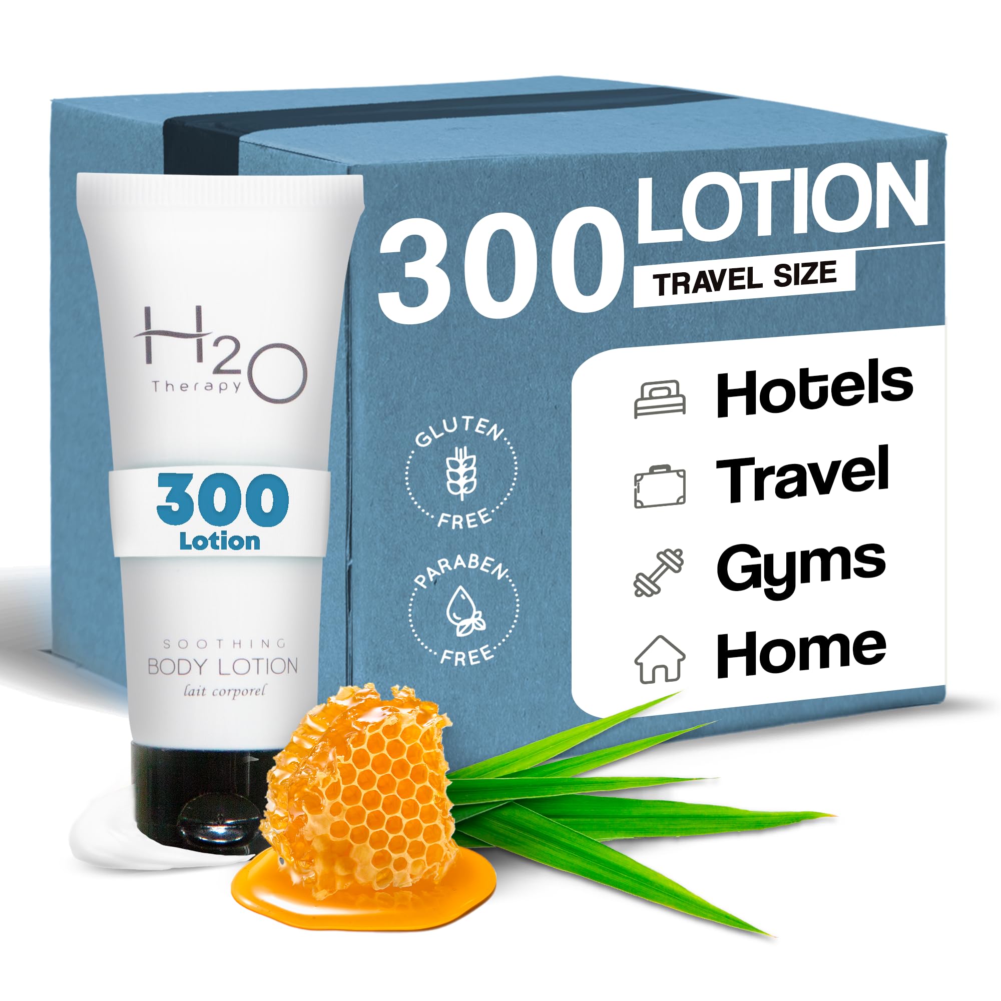 FULL HOSPITALITY AMENITY LINE FROM TRUSTED INDUSTRY SUPPLIERS: H2O Therapy is part of a broader hospitality amenity offering supplied through Diversified Hospitality Solutions and distributed by 1-Shoppe. This collection includes travel-size shampoo, conditioner, body wash, body lotion, and bar soap, along with access to other professional amenity lines and complete guest amenity kits to support consistent sourcing across hotels and hospitality properties. PERFECT FOR VACATION RENTALS: This is designed to meet the needs of vacation rental properties, creating an exceptional experience for guests, property managers, and cleaners. This lotion offers essential Hotel amenities ensuring their comfort and satisfaction. At the same time, our Hotel essentials for hosts are meticulously crafted to maintain a tidy and functional space within the rental property. PRACTICAL FOR CLOSET ORGANIZERS AND STORAGE: Our bottles are designed with a convenient size that makes bathroom storage effortless. Whether it's in your business or vacation rental properties, these bottles fit perfectly in cleaning closets, allowing you to keep your spaces organized and free from clutter. The clean compact size of our H2O therapy bottles ensures that you can easily find a dedicated spot for them, saving you precious storage space. BULK HOTEL AMENITIES: Guests often use body lotion during their stay, so our bulk lotion are tailored accordingly. We offer thoughtfully designed to cater to your guest's needs to ensure they have the right amount of each essential item, leaving no room for waste. This has 300 bottles soothing lotion at 0.85 oz each. Check out our 1-Shoppe store to see all of our skin care options. MINIMAL WASTE, MAXIMUM EFFICIENCY: H2O Therapy Lotion is designed with vacation rental ownersand hotel hosts in mind. Unlike classic travel size bottles of bathroom lotion that contribute to waste, our compact lotion allow you to minimize your ecological footprint.