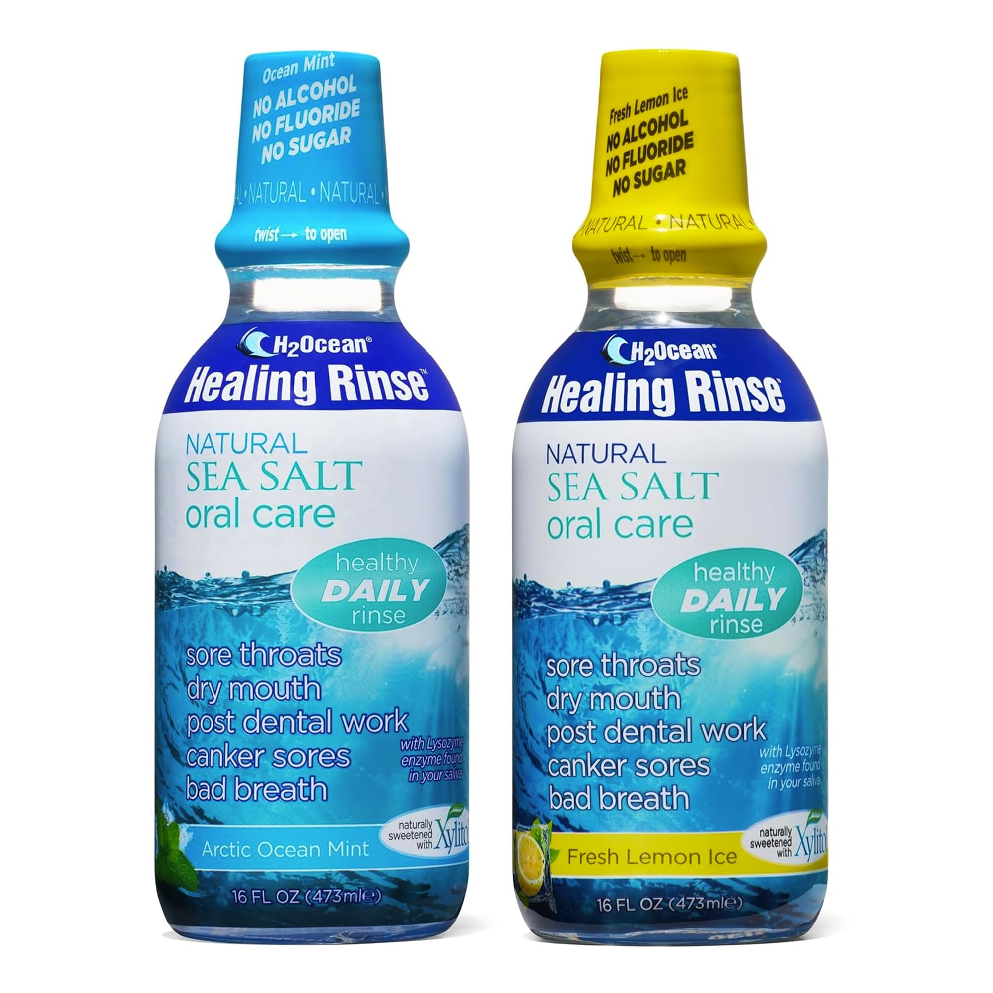 H2Ocean Healing Rinse Natural Sea Salt Oral Care Arctic Ocean Mint, 16 oz + Lemon Ice, 16 oz